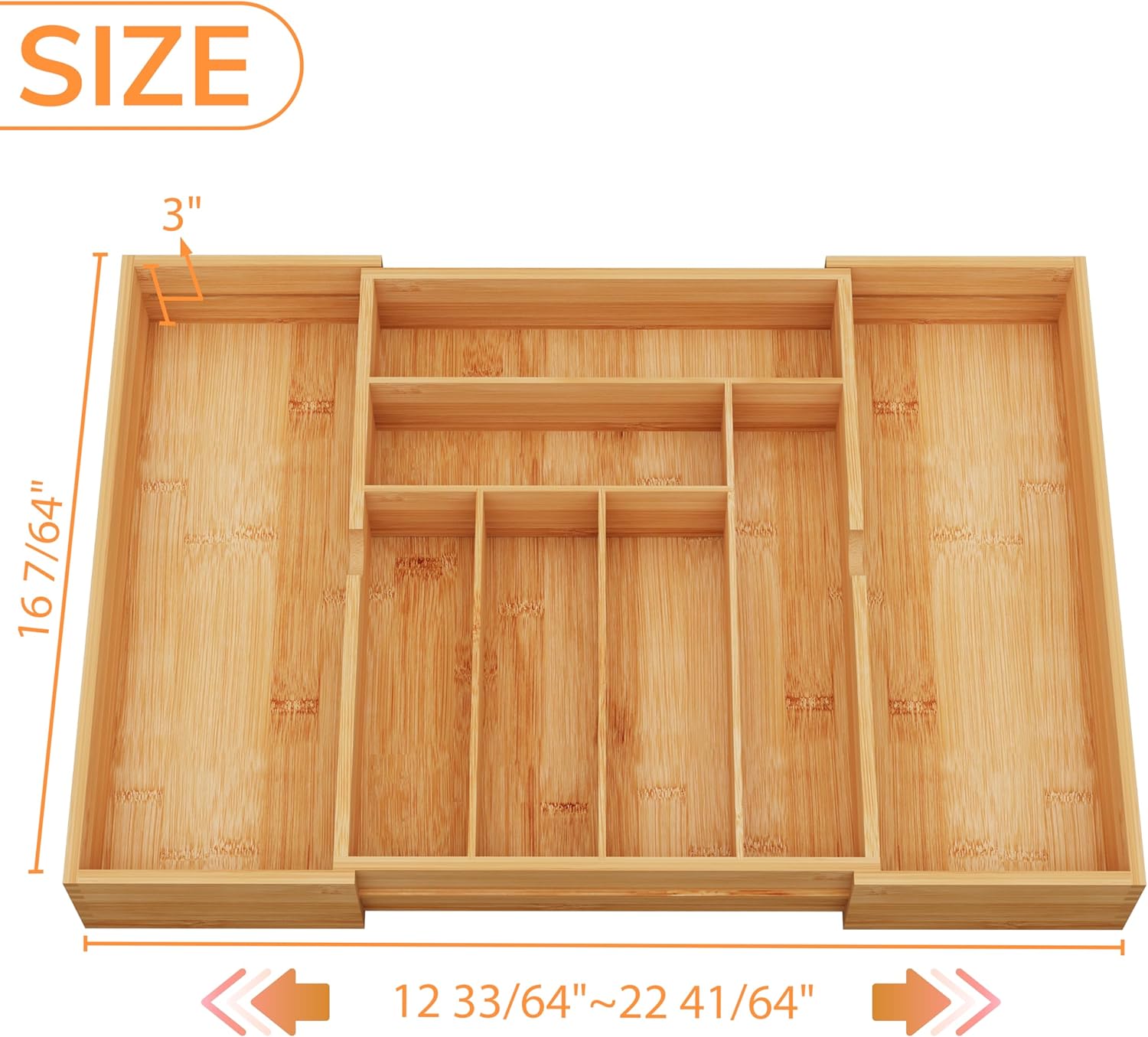 - High Quality Bamboo Material: The bamboo drawer organizer is made from high quality natural bamboo, which has a fine texture, smooth surface and warm feel; Bamboo is renewable, fast-growing, sustainable, and structurally sturdy, ensuring that the organizer will stand up to daily use and maintain its shape over time