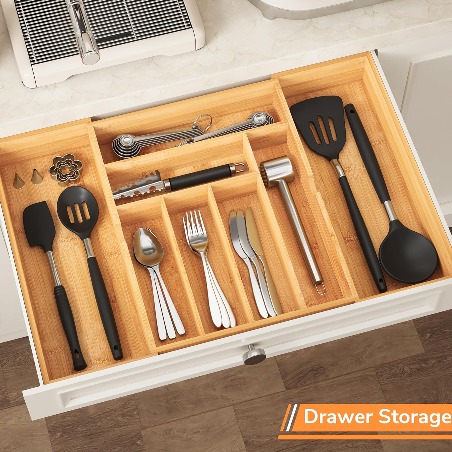 - Practical & Aesthetically Pleasing: The silverware organizer has a powerful organizing and storage function that maximizes the use of space and keeps all your essentials in order, and its natural color and texture adds a touch of freshness and elegance to the home environment