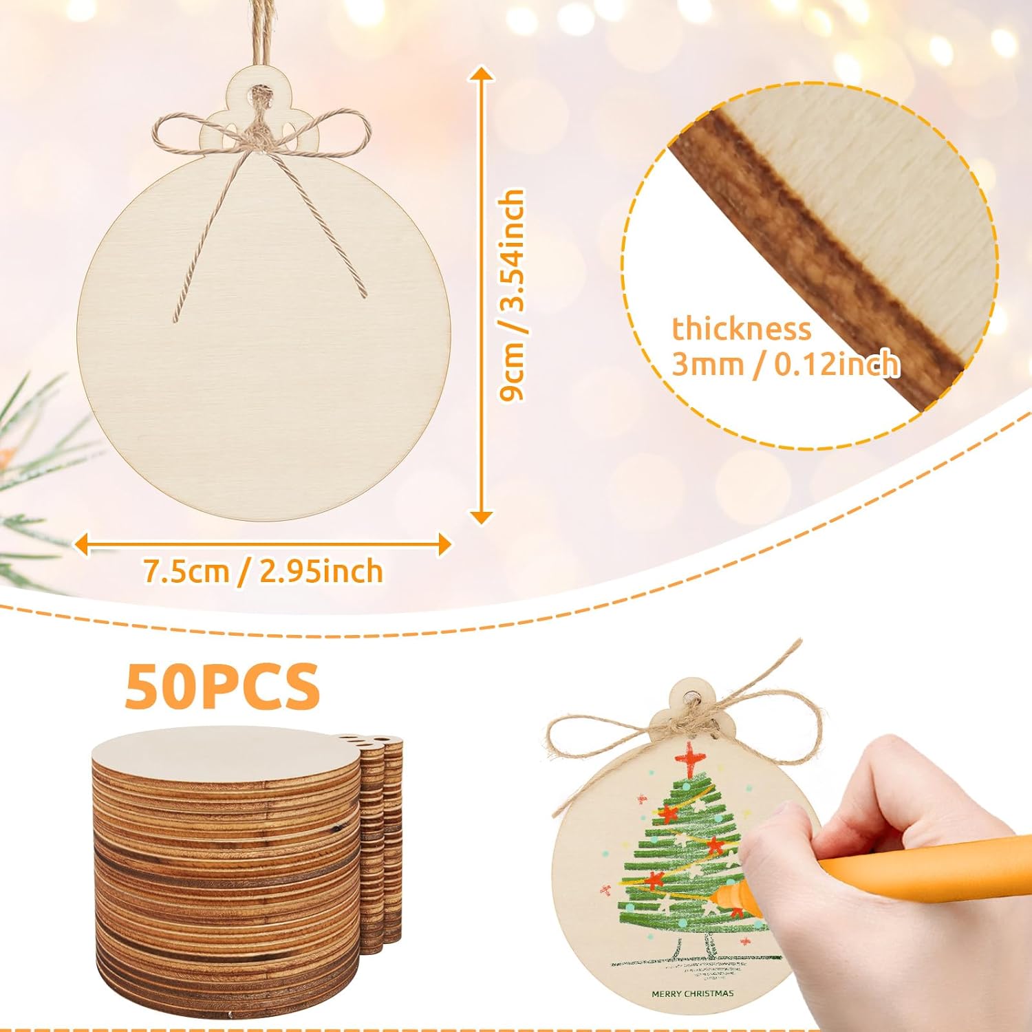 - 【DIY Christmas Ornaments Galore】50pcs unfinished wood ornaments, perfect for crafting your own unique Christmas decorations. These wooden circle ornaments for crafts are ideal for DIY enthusiasts and kids, offering endless possibilities for creativity.