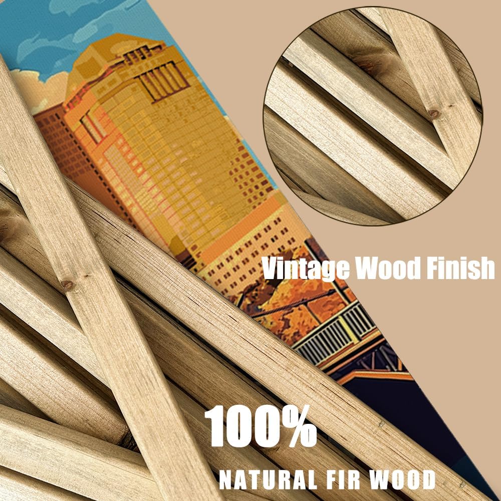 WREVERW Vintage Columbus Poster Canvas Print with Wooden Hanger Frame, Featuring Scioto River Bridge and Iconic LeVeque Tower, Wall Art for Home and Office Decor, 16x23 inches