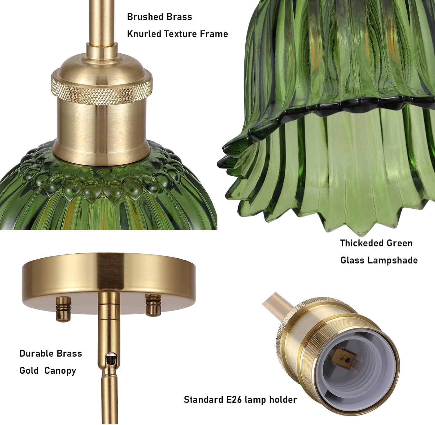 - 【Green Tone Pendant Light】Using classic thickened green glass material lampshades, which provide excellent light transmission to illuminate various spaces in your home,not only brings a touch of vitality and energy to the indoor space,but also creates a nostalgic and retro atmosphere,Perfect for mid-century decoration styles and combines the contemporary and vintage style.