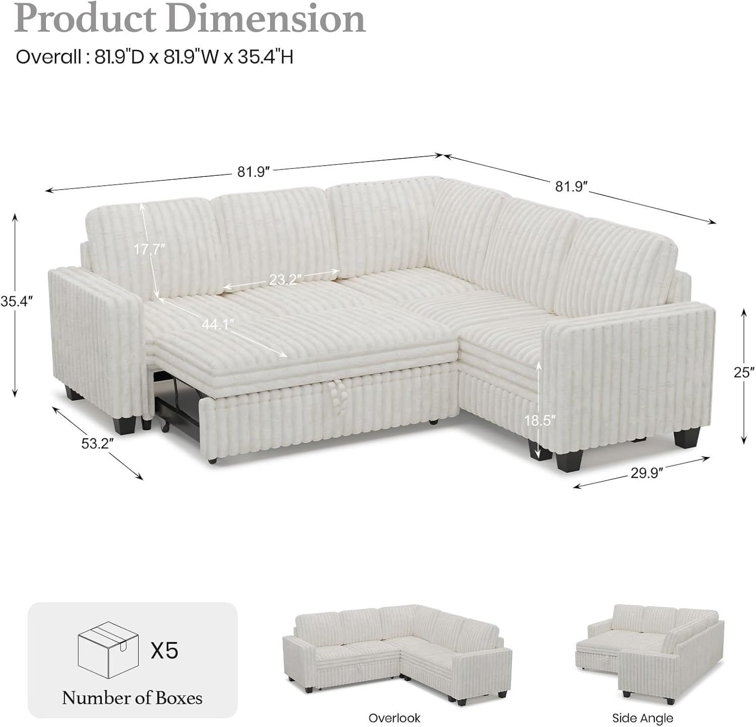 - Easy Assembly: Assembly of this modular sectional pull out sofa is effortless. The corduroy sectional sofa is conveniently packaged in 5 boxes, which may occasionally be delivered on separate days