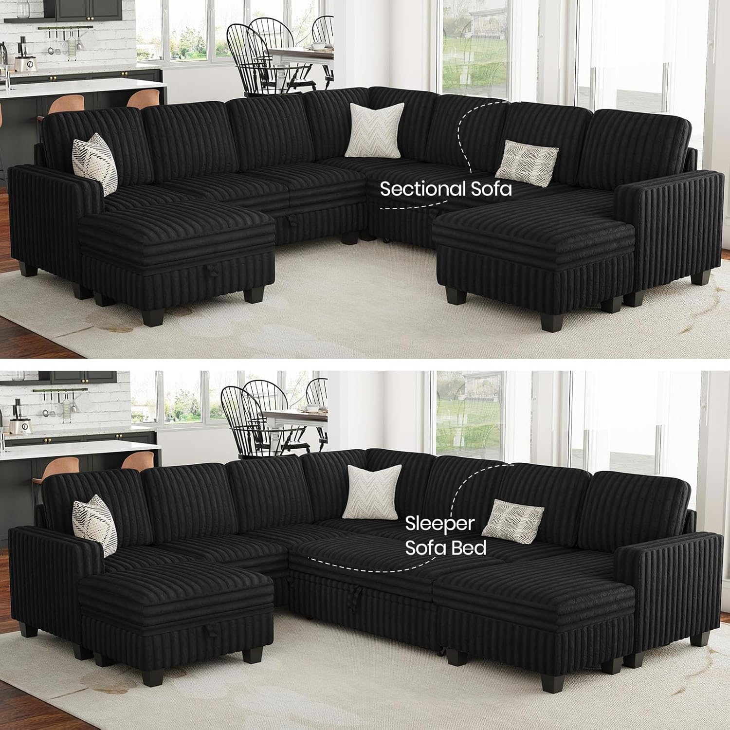 - Sturdy Pull Out Couch: Modular sectional sofa transforms sleeper sofa bed couch freely. The pull out bed module allows seamless conversion between a sectional couch and sleeper sofa, enhancing adaptability. Whether L shaped couch, U shaped couch, or a sleeper sofa with pull out bed, it transforms to fit your space perfectly