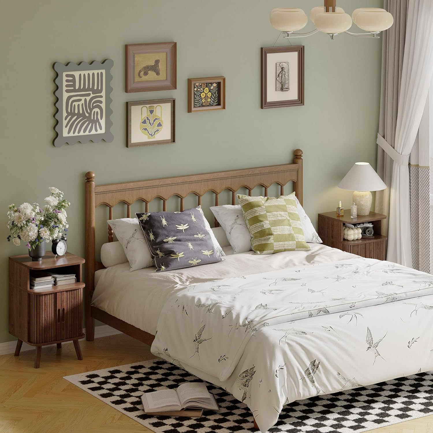 - 【Quality Materials】: This fluted wooden nightstand is made of engineering boards and solid wood legs. The design of the inwardly retracted legs enhances the load-bearing capacity of the nightstand, making it more stable