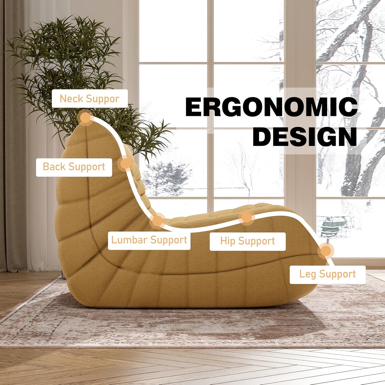 - ăErgonomic Designă-Designed with your comfort in mind, the bean bag chair features a thoughtful ergonomic design that provides exceptional support for your neck, back, lumbar, hip and leg region. The high-elastic memory foam filling conforms to your body, offering targeted support and ensuring a cozy sitting experience.