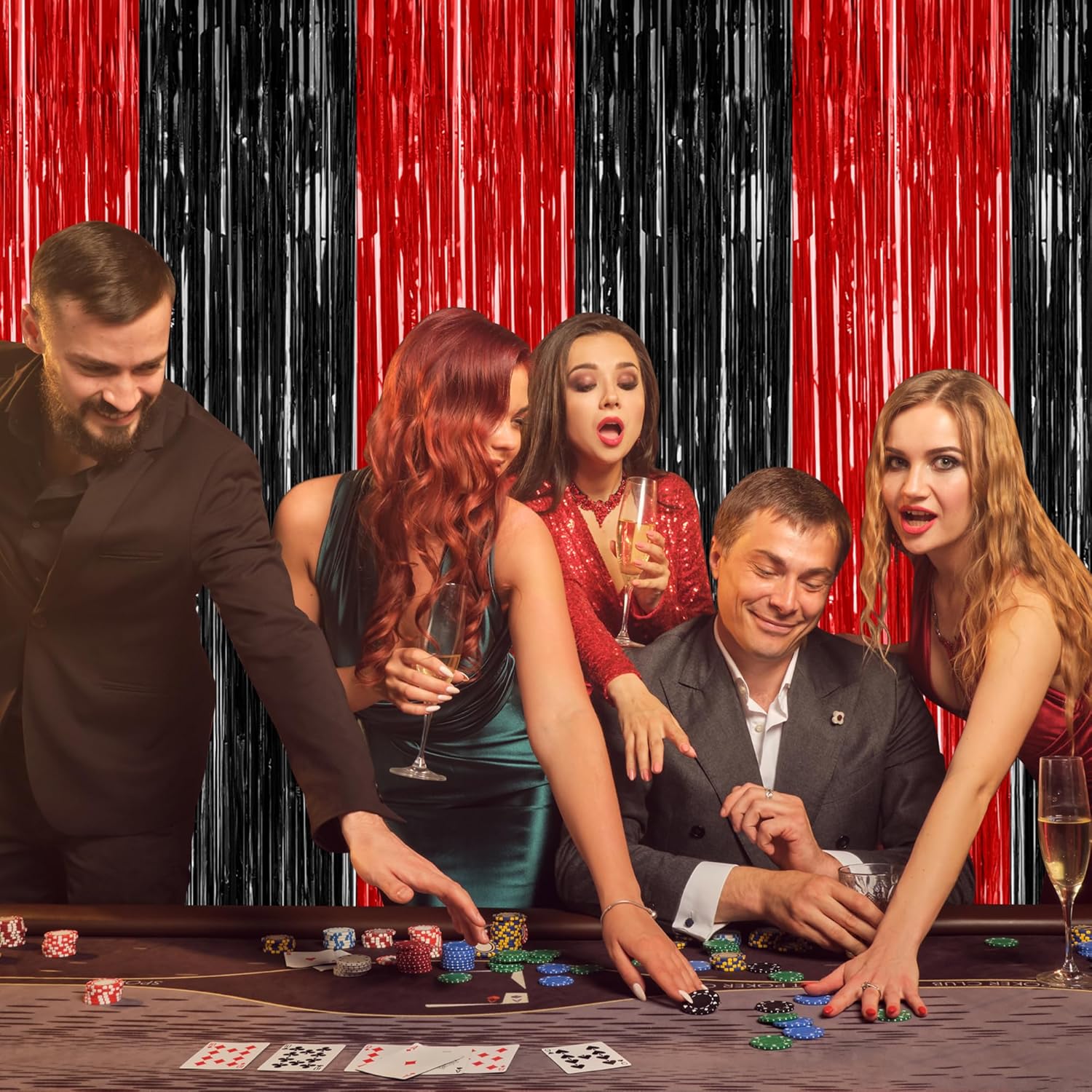 2 Pack Backdrop Curtains, 3.28 FT x 7.05 FT Black and Red Party Decor, Metallic Party Streamer Tinsel Foil Fringe Curtains, Foil Curtains Backdrop Halloween Decorations Party Supplies