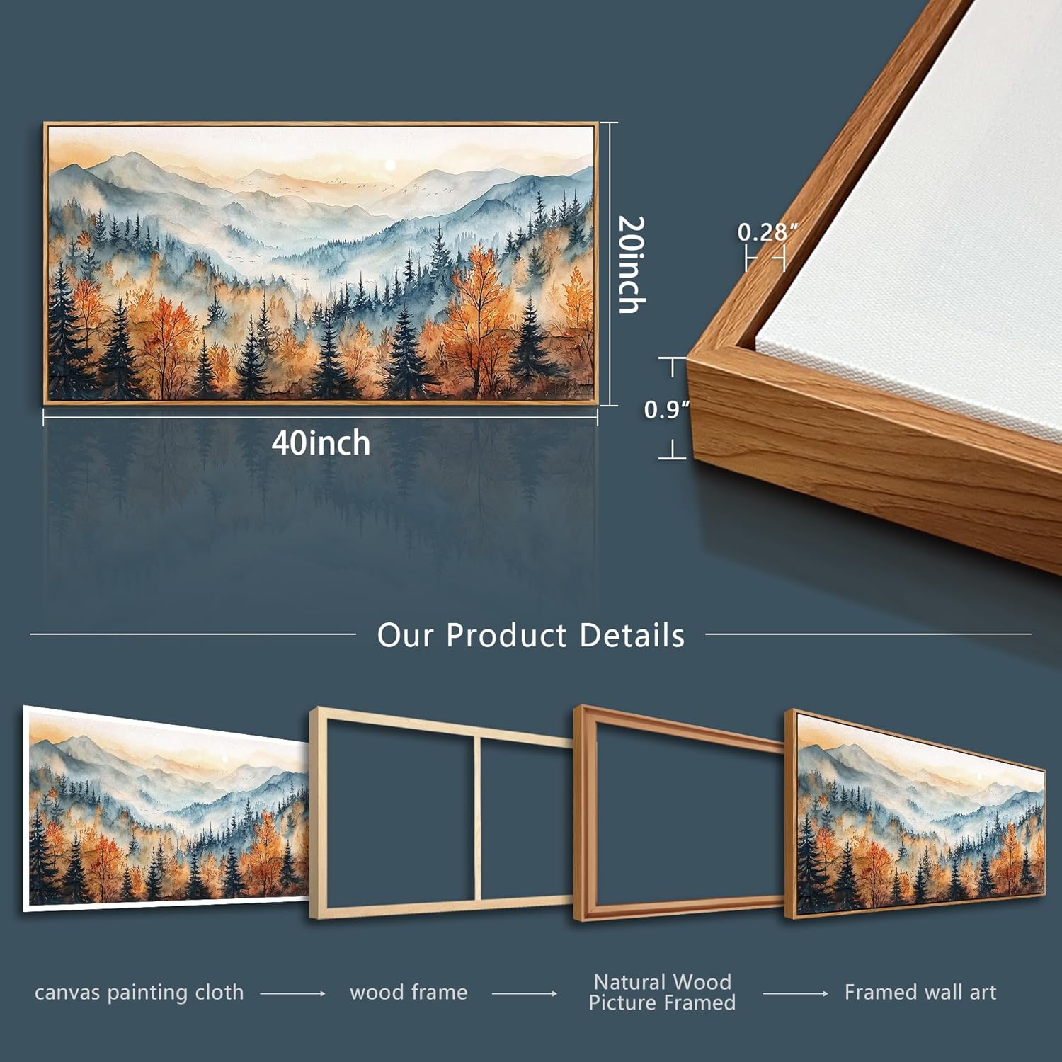 KELIYUAN Panoramic Wall Painting Canvas Wall Art For Living Room Large Wall Decor For Bedroom Abstract Mountain Forest Painting Pictures Office Decor Modern Room Home Decor Wood Framed 20"X40"