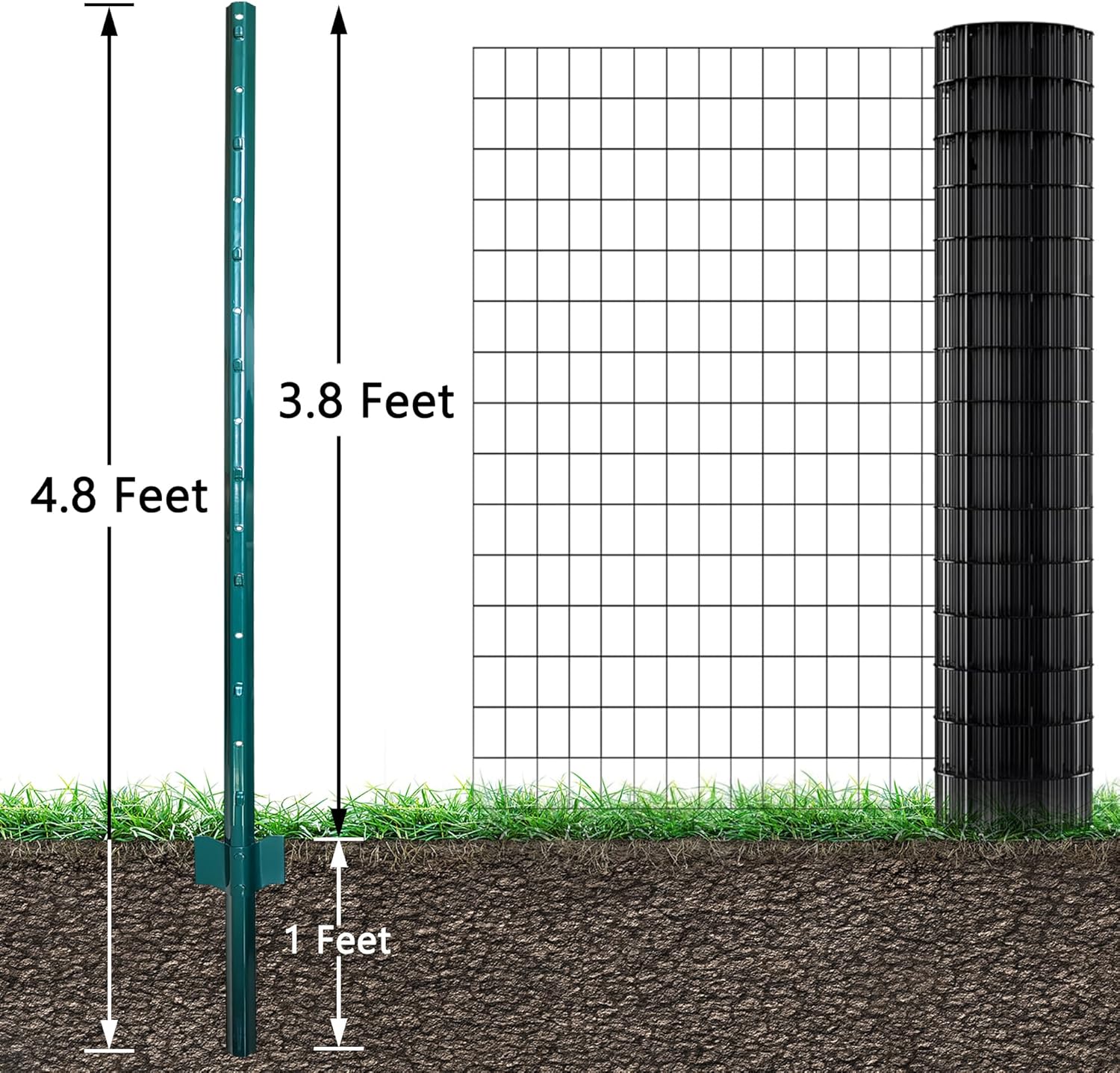 ARIFARO Fence Posts 4.8 Feet Sturdy Duty Metal Fencing Poles, Pack of 10, No Dig Garden U Post for Wire Fencing Steel Post for Yard, Outdoor Wire