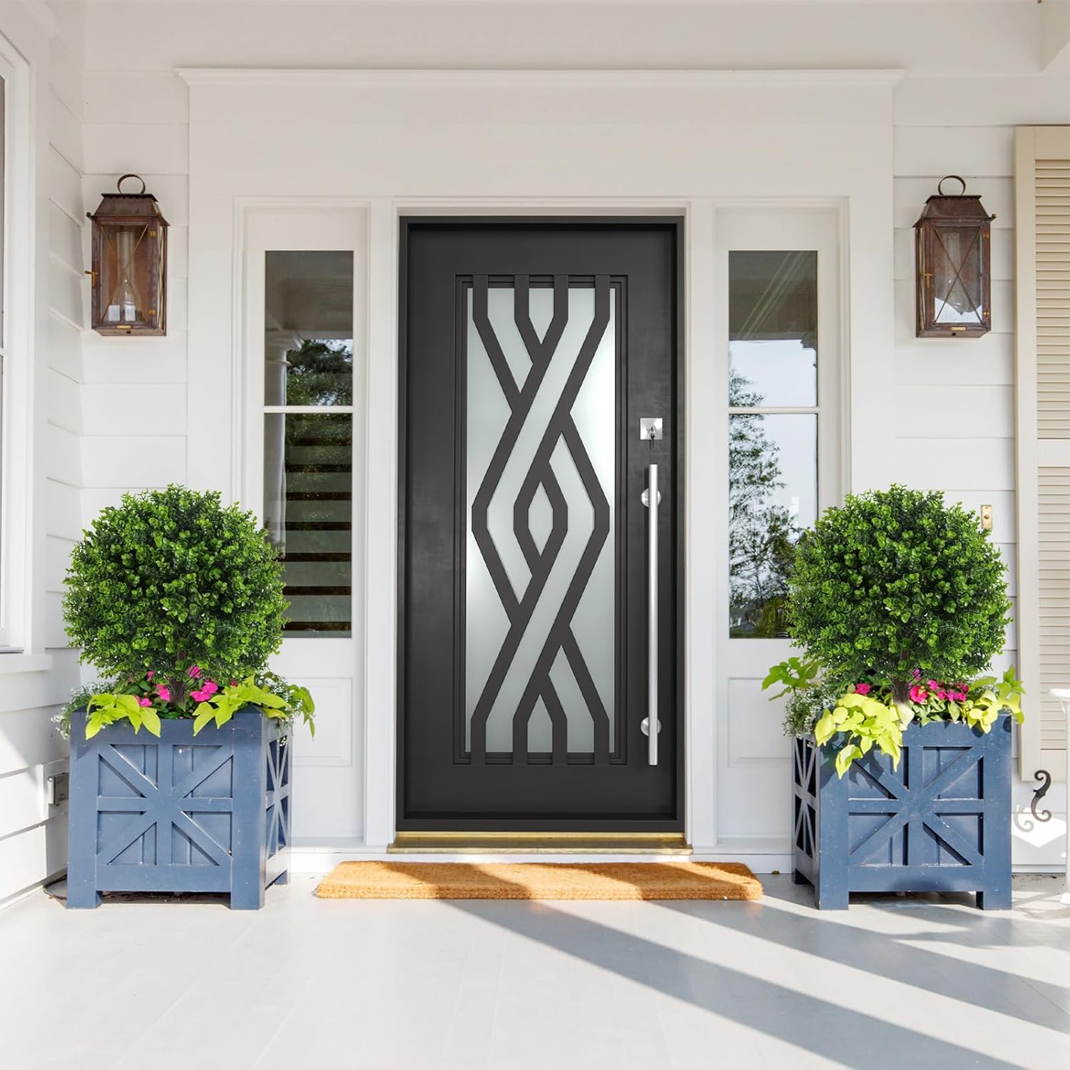 Artificial Boxwood Topiary Outdoor Plants with Spike, 2 Pack Faux Bushes UV Resistant Fake Shrubs for Front Porch Décor