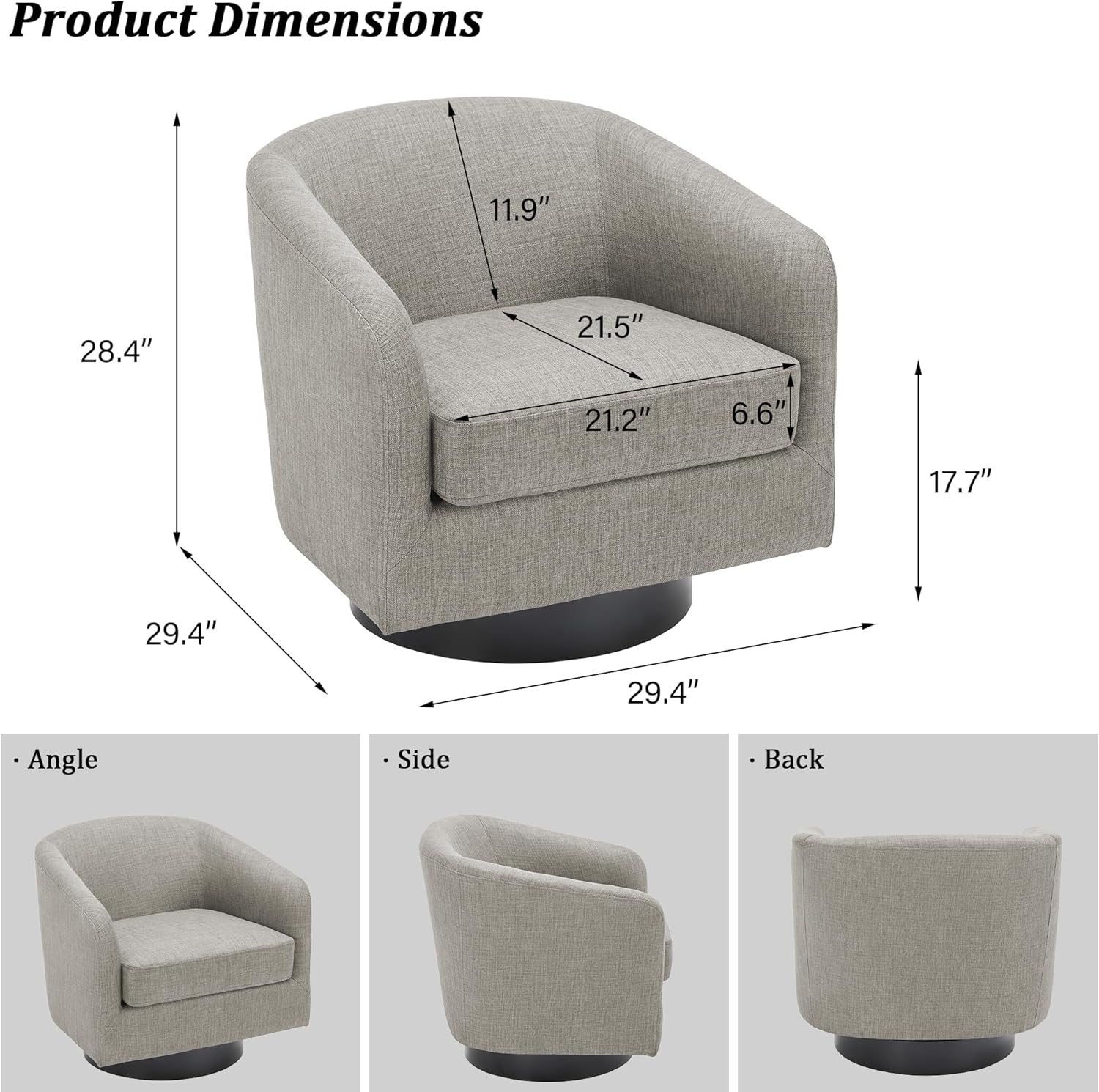 - 360 Degree Swivel Barrel Chair: This 360 degree round swivel chair designed for your leisure comfort. Heavy solid turntable, making it more stable and not wobbly