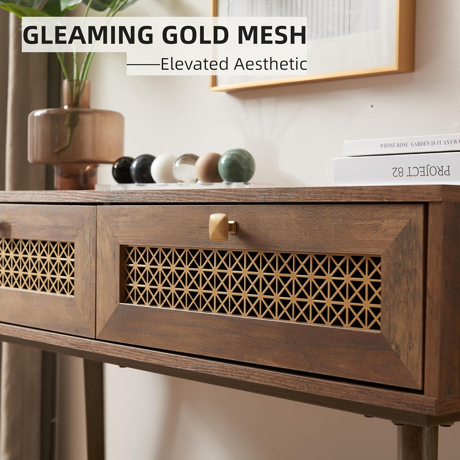 - Design with Metal Mesh Elements: The surface is made of vintage and textured engineered wood,and the storage drawer add a hollow metal mesh decorated elements. The combination of modern and traditional design blends with any style of decor,adding an elegant contemporary charm to your interior space,feel the quality of life in the details.There are three colors to choose,you can feel free to buy them together with other furniture from the same collection according to the color