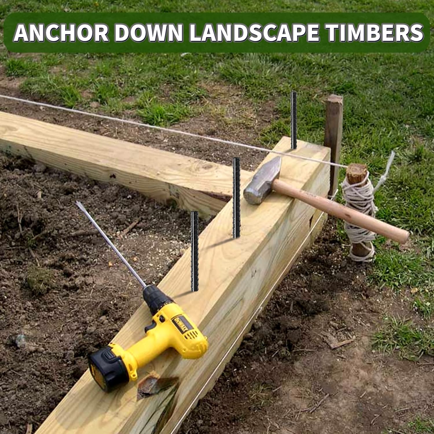 - 【Rebar Stakes Heavy Duty】These rebar stakes are made of malleable steel material and applied black powder, withstanding all types ground and no rusting even in wet soils for years.