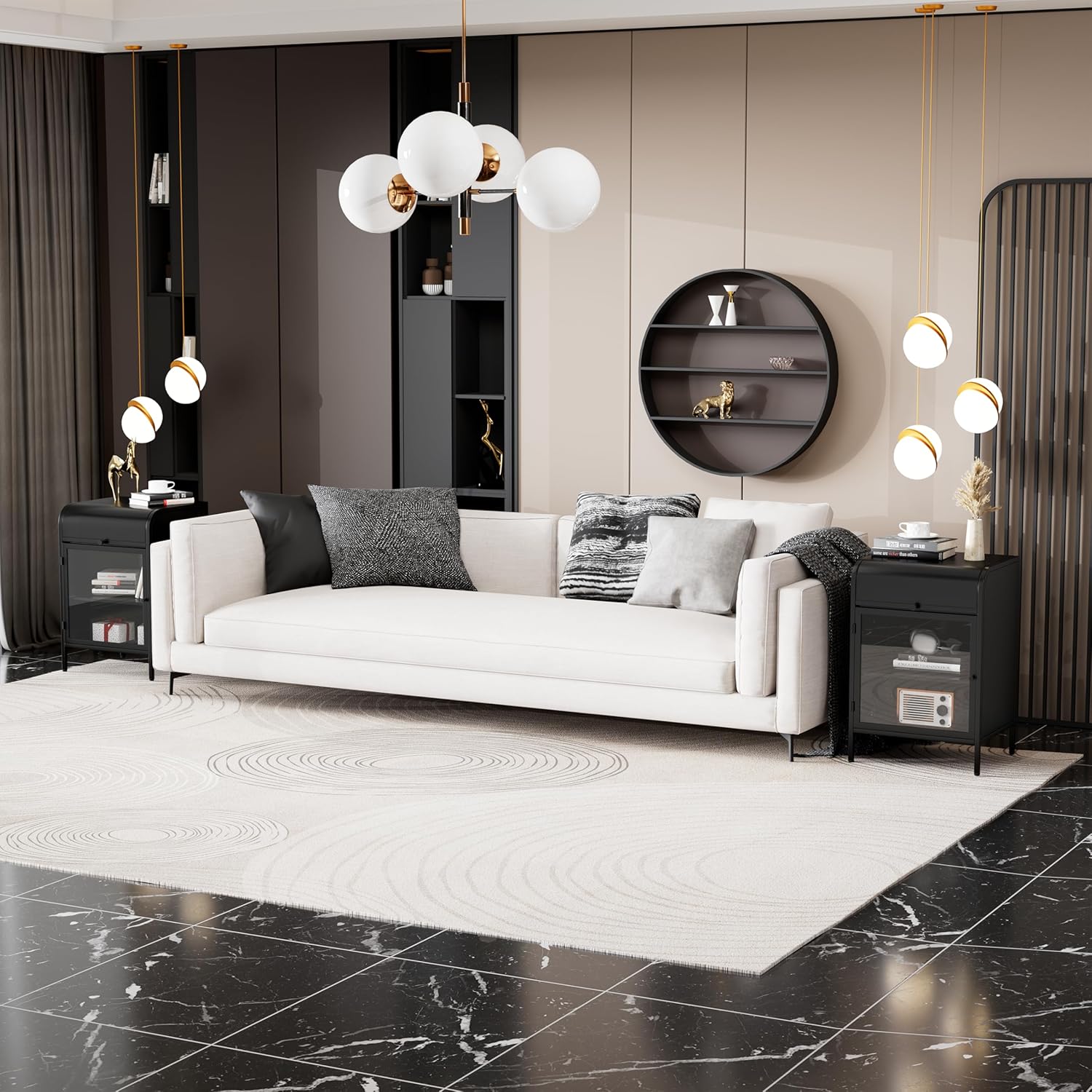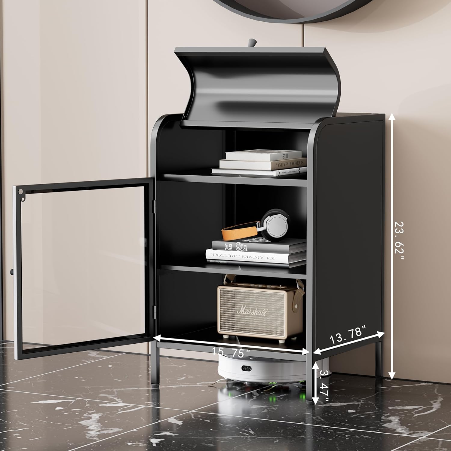 - Stylish Glass Door:Enhance your bedroom decor with our nightstand's chic design. The transparent glass door adds a unique artistic touch, while the metal frame features a sleek matte finish, effortlessly matching any room style. It combines modern and mid century element makes the room look more stylish