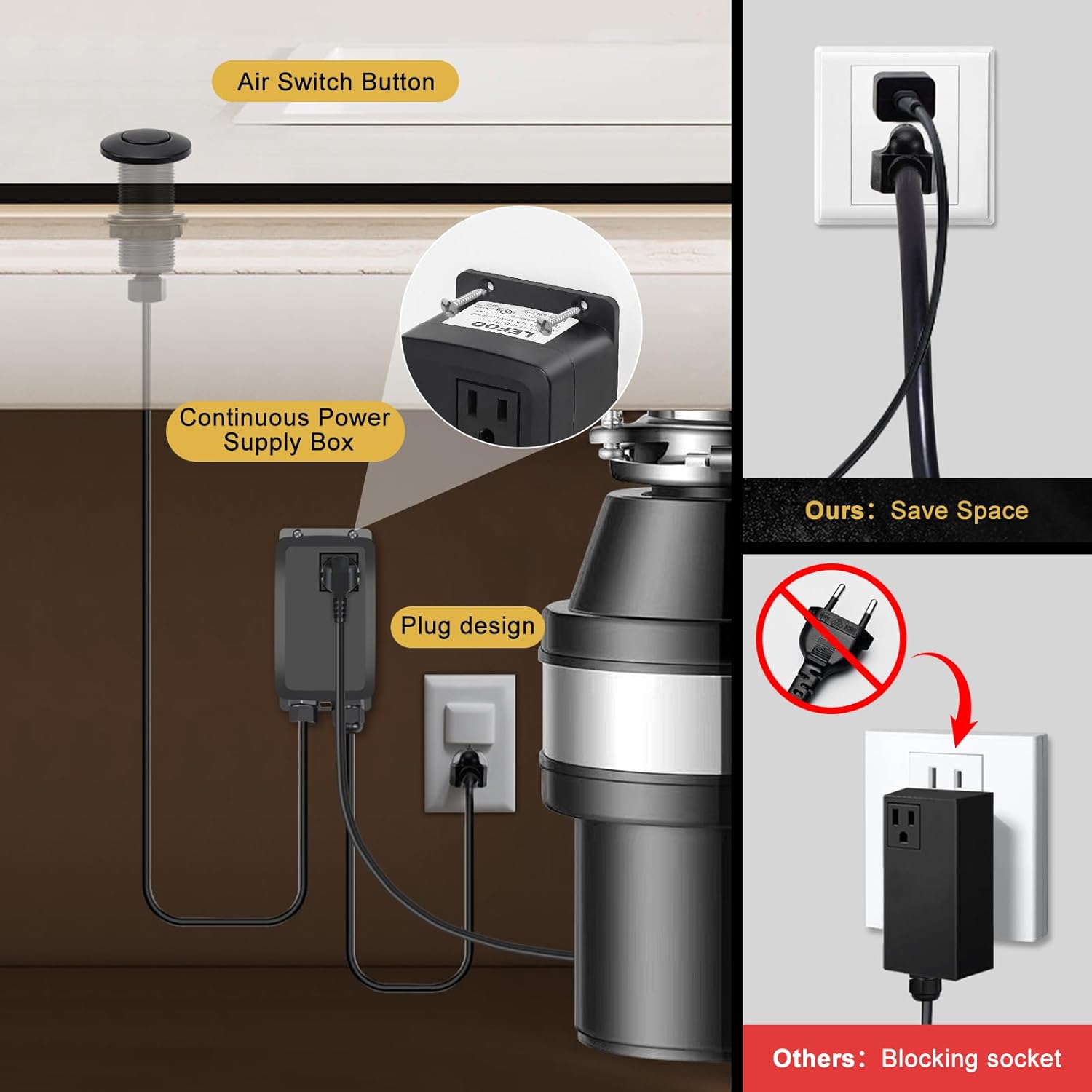 - Excellent Compatibility: Our garbage disposal air switch kit can work with any brand of garbage disposals(≤2.5HP), compatible with Waste King, ISE, Moen, GE etc.