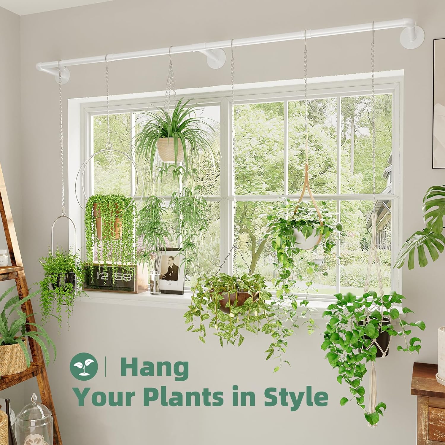 Plant Hanger Indoor with 6 Hanging Chains Hanging Planters for Indoor Plants Hanging Plant Holder Window Plant Shelves White Metal Rod(Pot not Included
