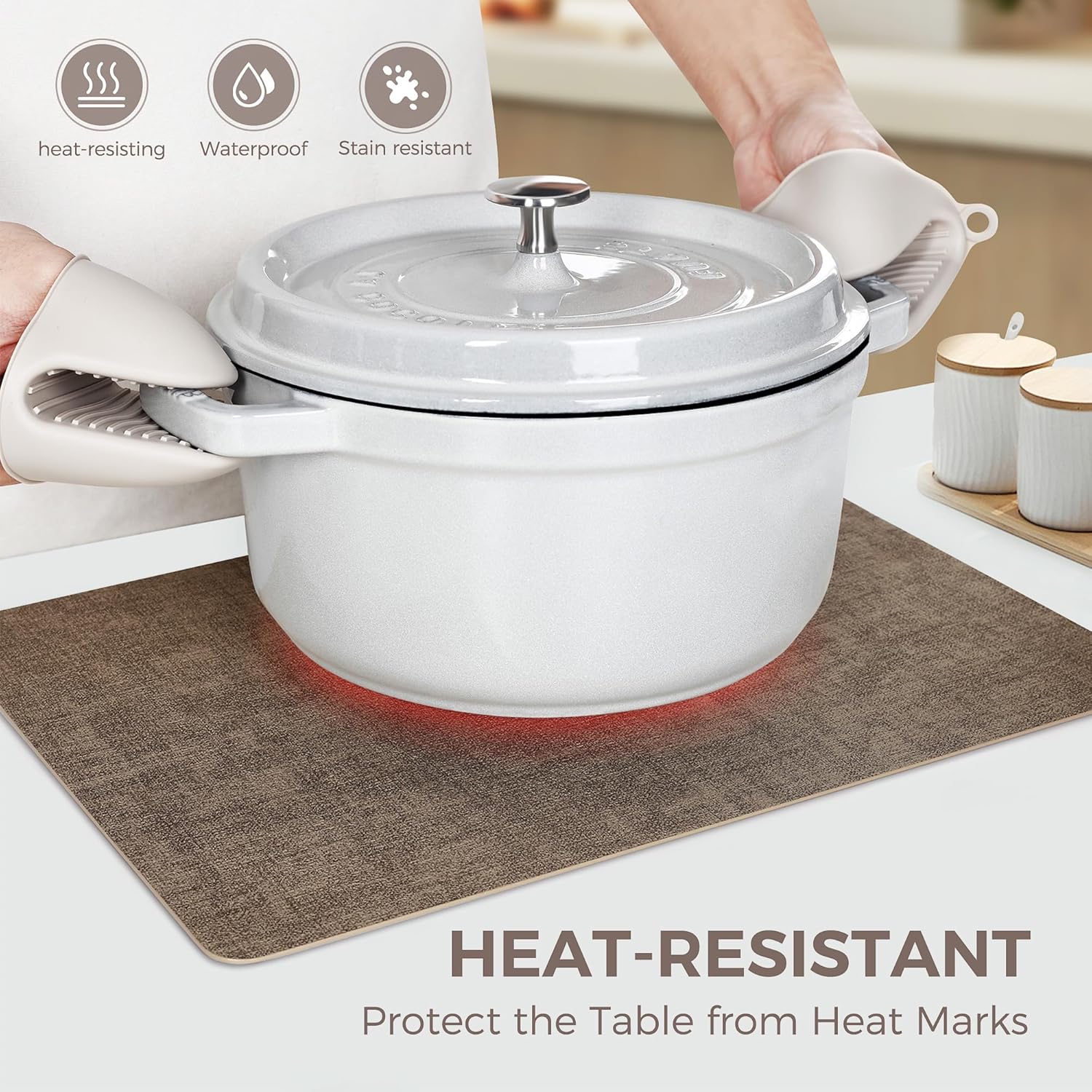 - HEAT RESISTANT PLACEMATS: These placemats can resist high temperature, avoiding leaving heat marks during meals, which is work great for hot dishes. Meanwhile, the placemats have a beautiful color, non-slip surface and easy to recover from creases