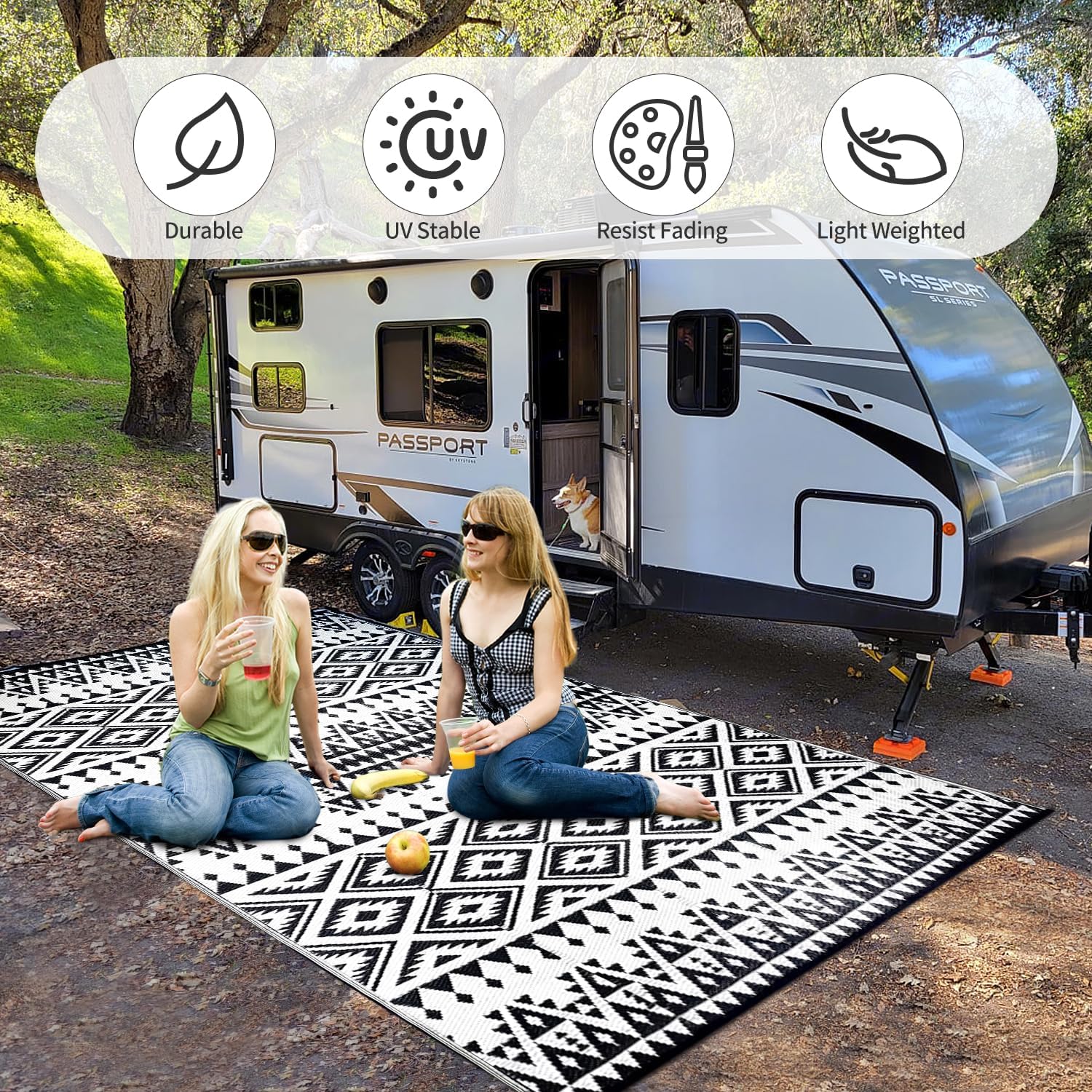- Portable and Convenient: Lightweight and foldable, this waterproof outdoor rug comes with a carry bag, making it easy to transport for RV trips, camping, picnics, or outdoor events. Perfect for on-the-go lifestyles;