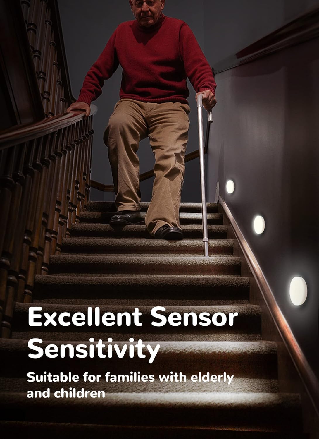 - 【Ideal for Parents】This motion sensor stair light can help prevent parents and many seniors from tripping when getting up at night, and are ideal for stairs, closets, bathrooms, corridors, wardrobe or under cabinets. They're also great for emergencies or portable lighting, like camping, thanks to their compact design