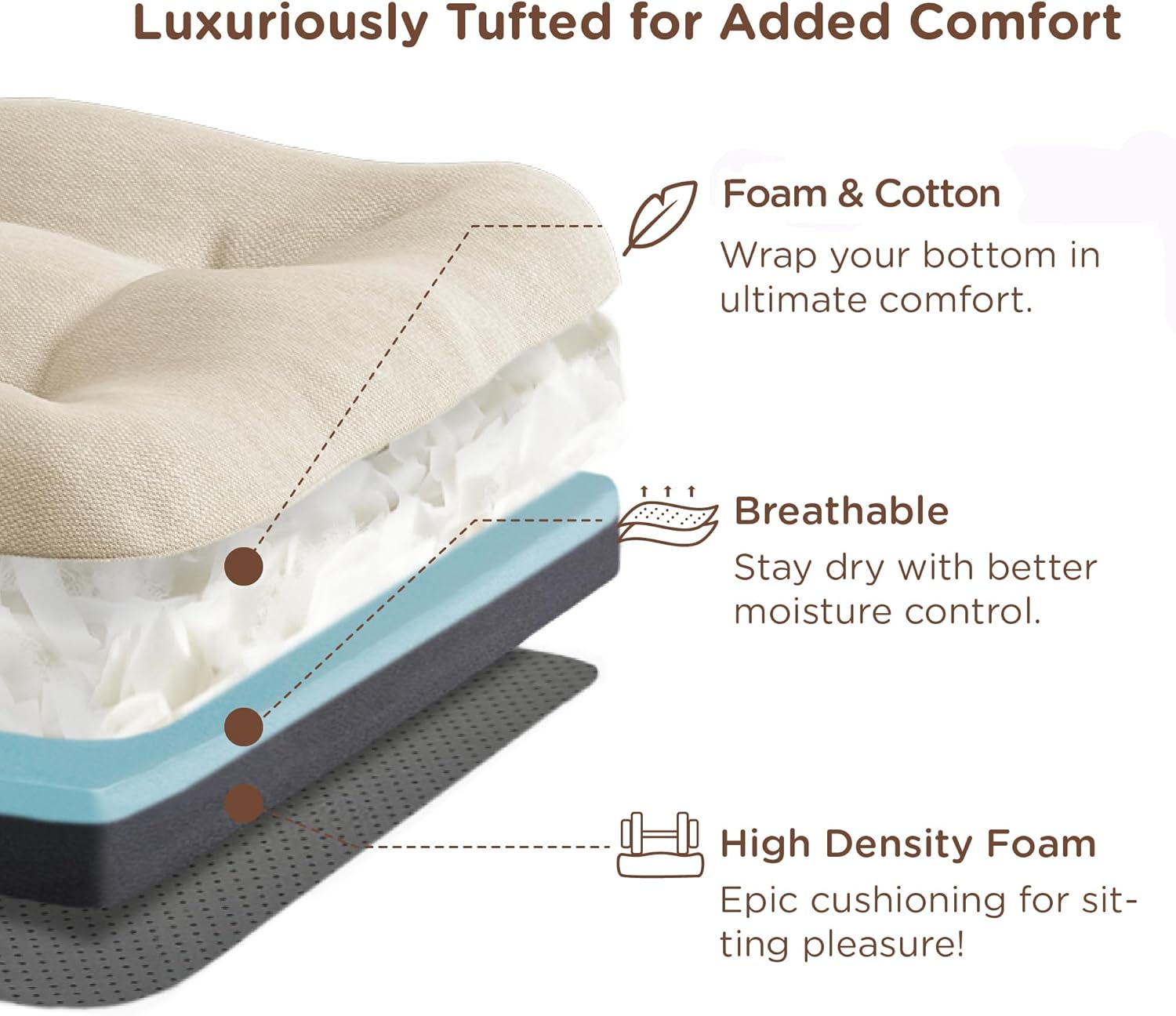 - 【Triple-Layer Construction】Top layer is a combination of cotton and shredded premium foam. Along with the breathable layer and high-density foam, it delivers the perfect balance of comfort and support to create a remarkable seating experience