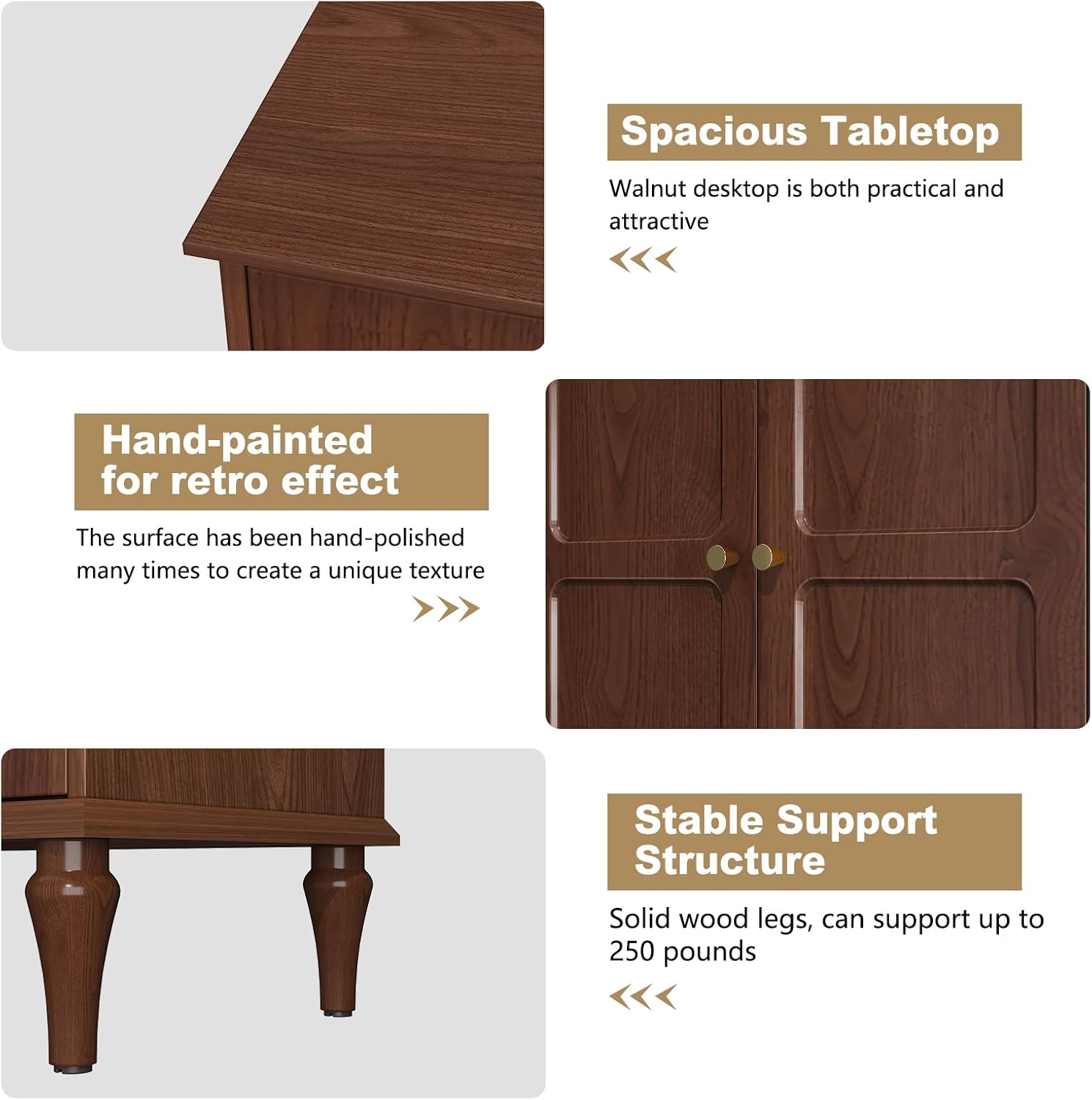- ăExcellent craftsmanshipă: The surface of the entertainment console is specially hand-processed to present a special texture. The 6 solid wood legs adopt the classic Roman column shape, presenting a unique medieval style. The back of the media center cabinet has cross-layered oval cable management holes to organize messy electronic wires.