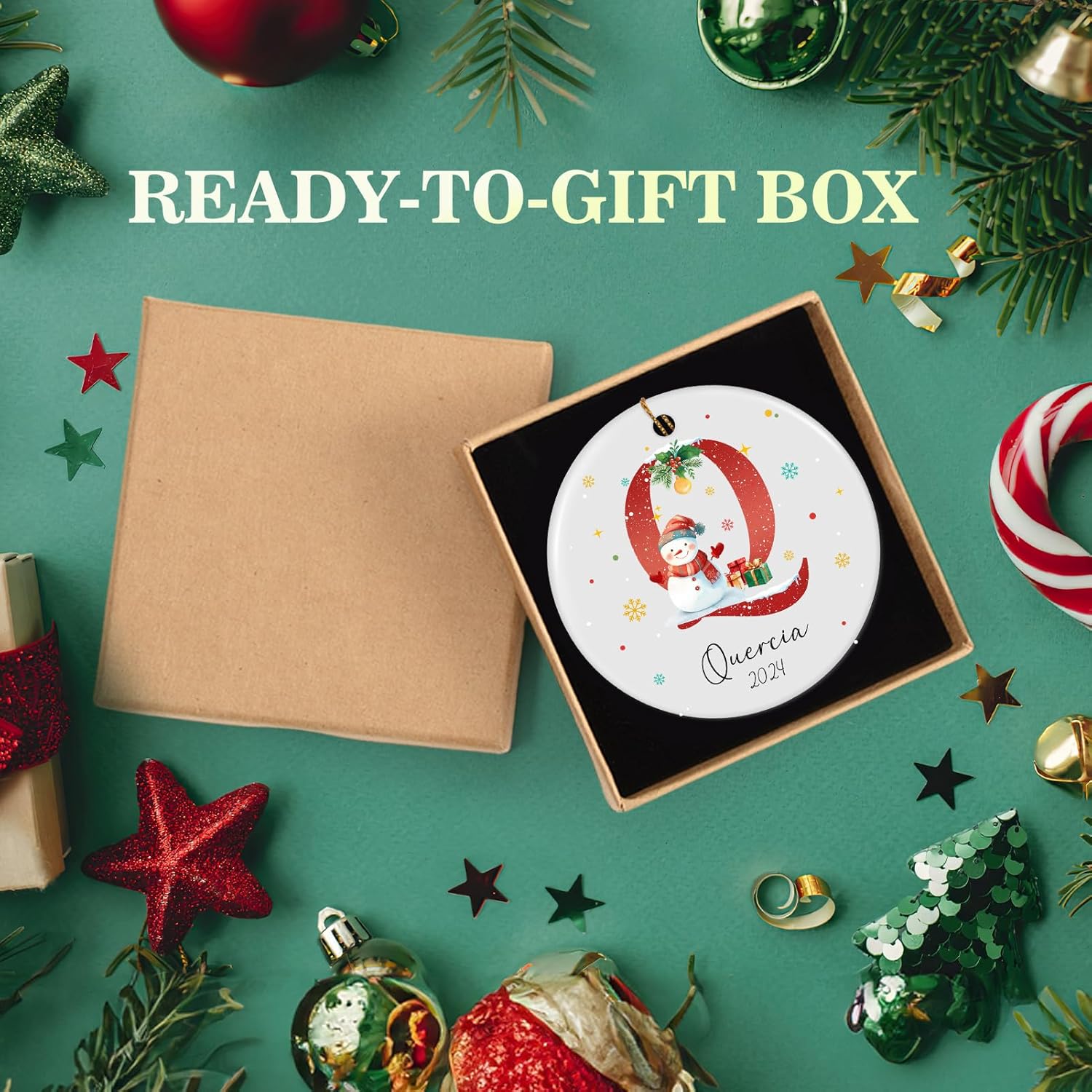 Personalized Christmas Ornaments with Initial Name, Ceramic Custom Monogram Initial A-Z Christmas Ornament 2025 for Kids Family Friends, Customized Letter Name Ornaments for Christmas Tree Decorations