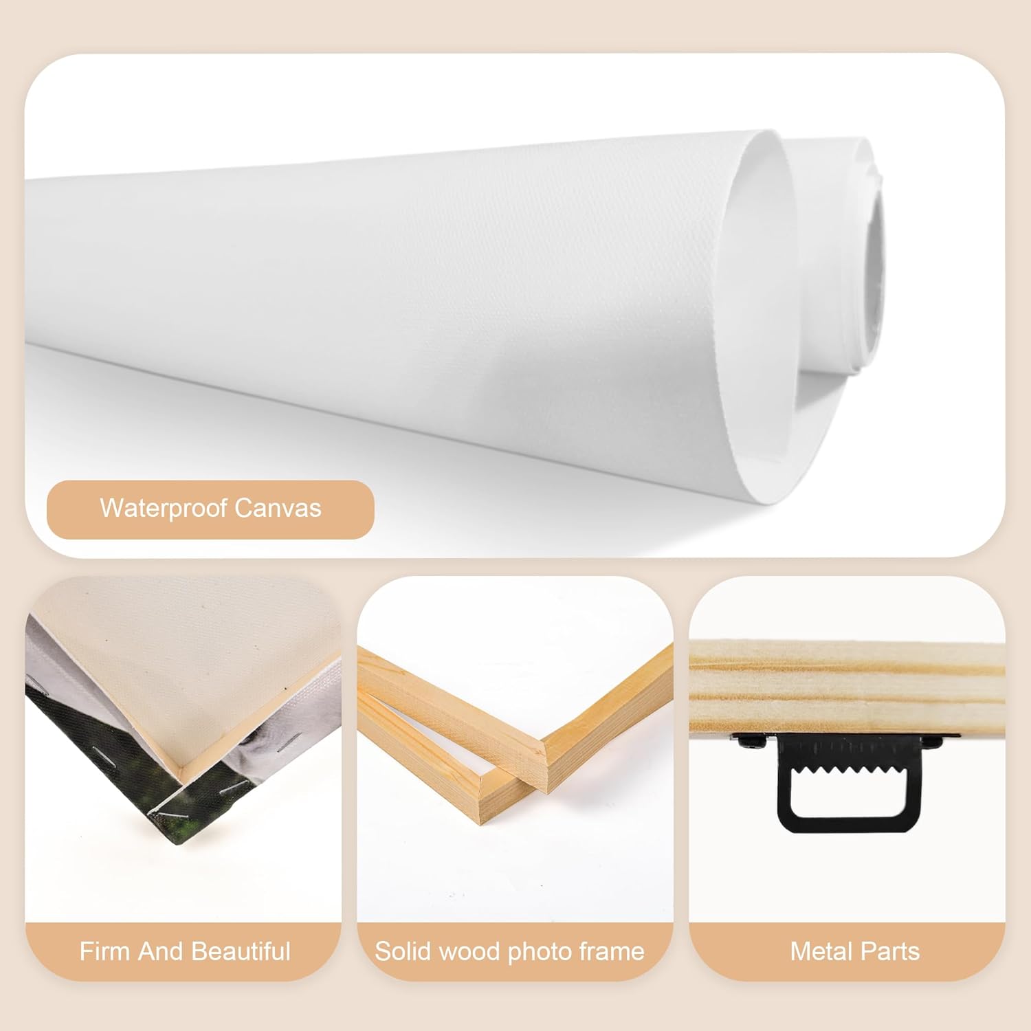 - Multi Frames Option Available: We provide multiple colors frames Including Black, Brown and wood grain. The canvas prints with your photos will be the perfect artwork with a floating frame. A groove embedded in the frames on the backboard and we also provided two matching hook, so you can easily install the customized picture where you want to hang it.