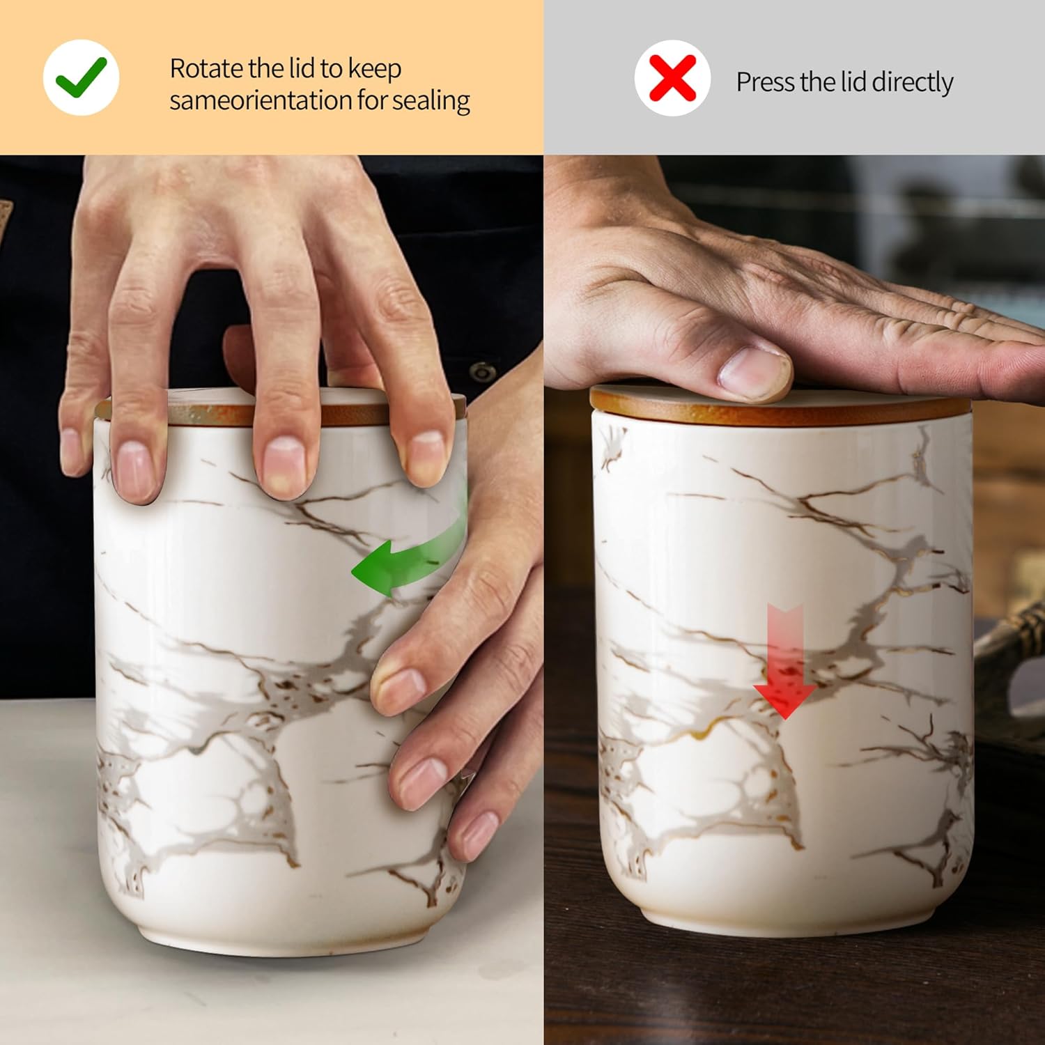 - Durable & Easy Maintenance | These durable ceramic canisters are resistant to stains and odors. The smooth glaze finish ensures easy cleaning. (Wooden lids should be hand-washed and dried properly.)