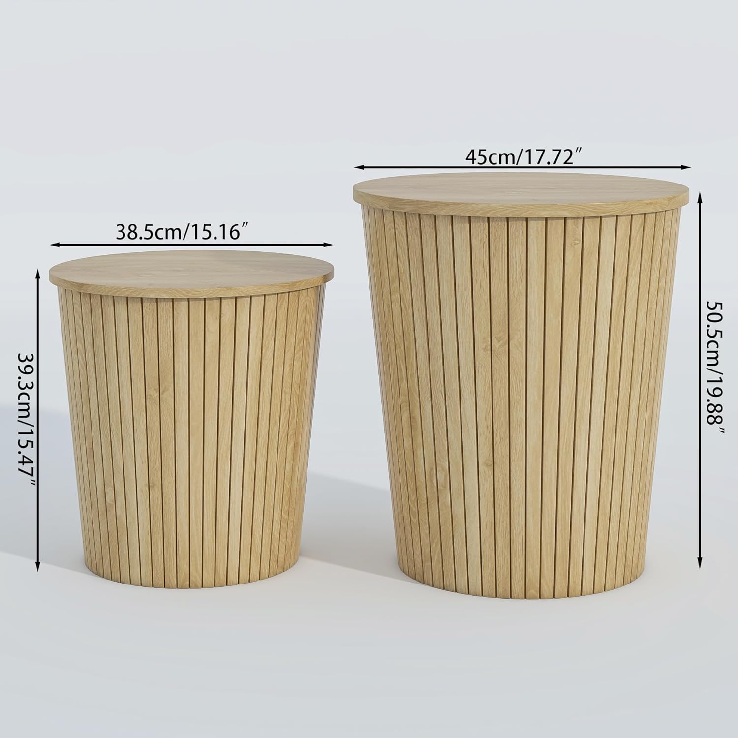 Round Coffee Table Set,2-Piece Modern Farmhouse Living Room End Table Set, Nesting Table Round Natural Finish for Living Room (Wood, 17.72'')