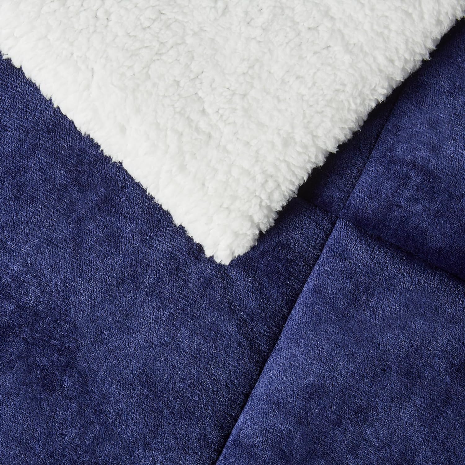 Amazon Basics Reversible Sherpa Comforter Set with Pillow Sham, Navy, Queen/Full