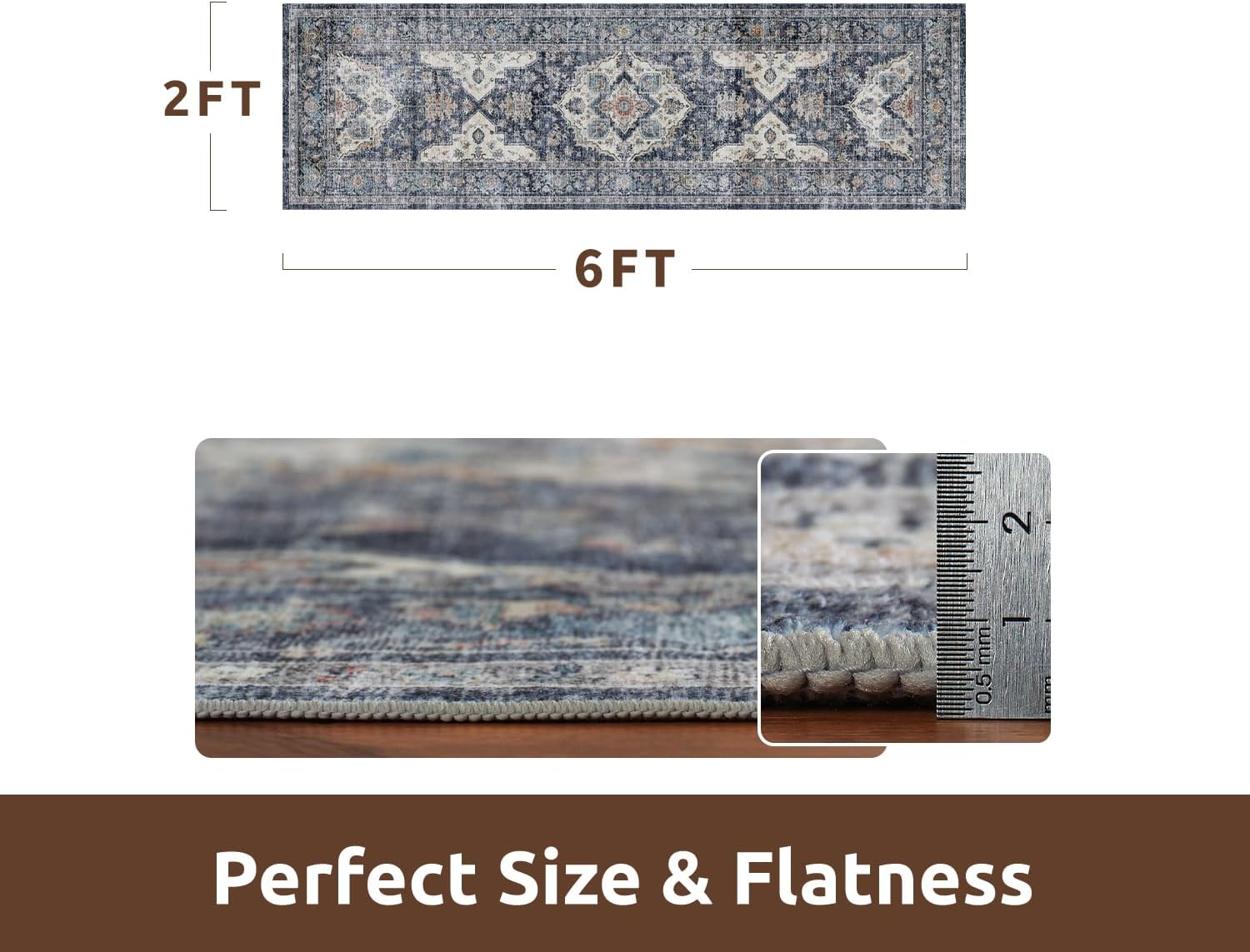 AMOAMI-2X6 Runner Rug-Washable Runners for Hallways-Soft Non Slip Bedside Rugs for Bedroom-Vintage Long Rug for Hallways Entryway Laundry Room Stair Kitchen Bathroom Blue