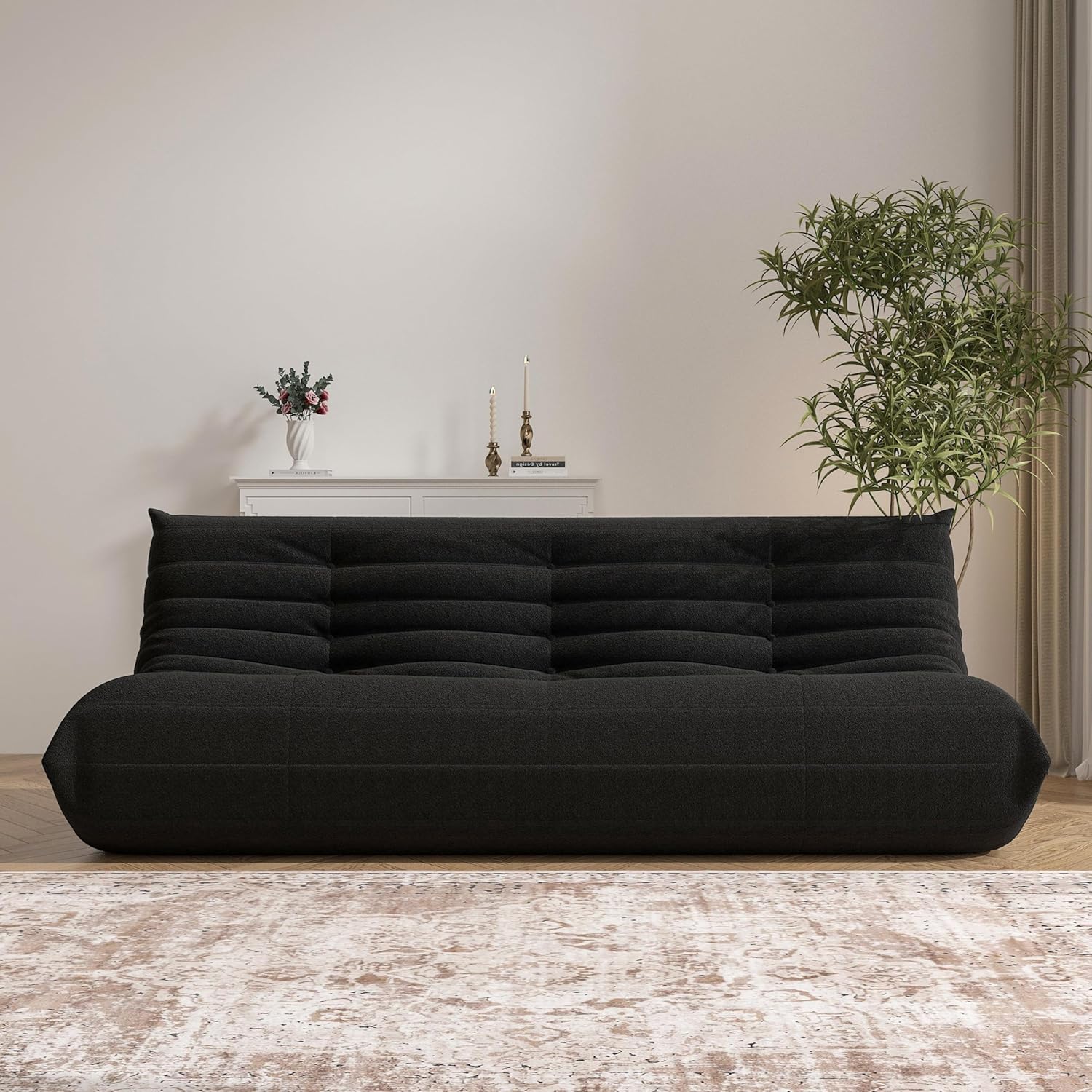 Big Bean Bag Chairs for Adults, 3 Seater Large Bean Bag Chair Sofa, Fireside Chair Lazy Sofa Chair with High Density Comfortable Foam, Modern Bean Bag for Living Room, Bedroom, Office (Black)