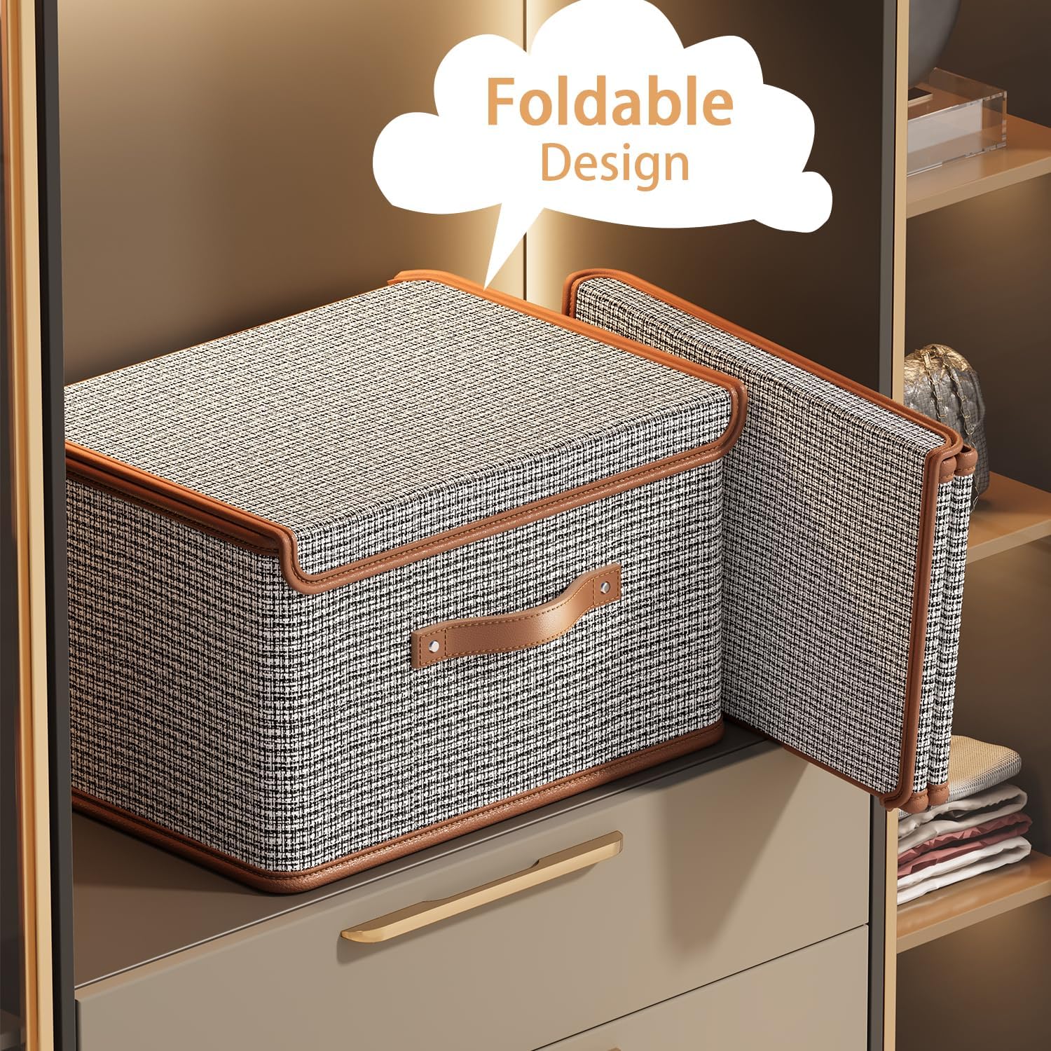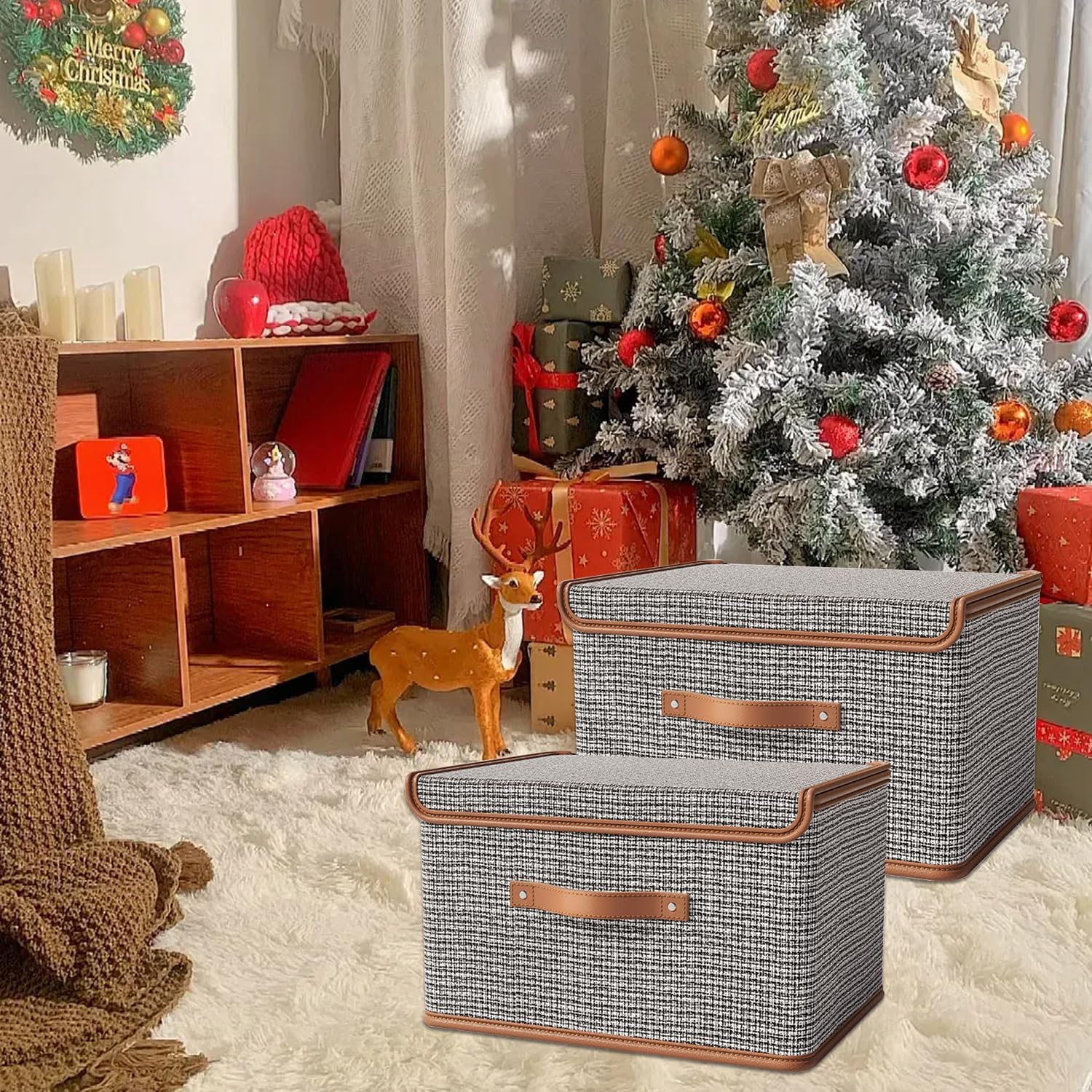 Tuza 2 Pack Storage Bins with Lids, Collapsible Closet Organizer Container, Fabric Organizer Box with Handles, Decorative Storage Boxes with Lids for Organizing Clothes, Sheet, Light Grey, Extra Large