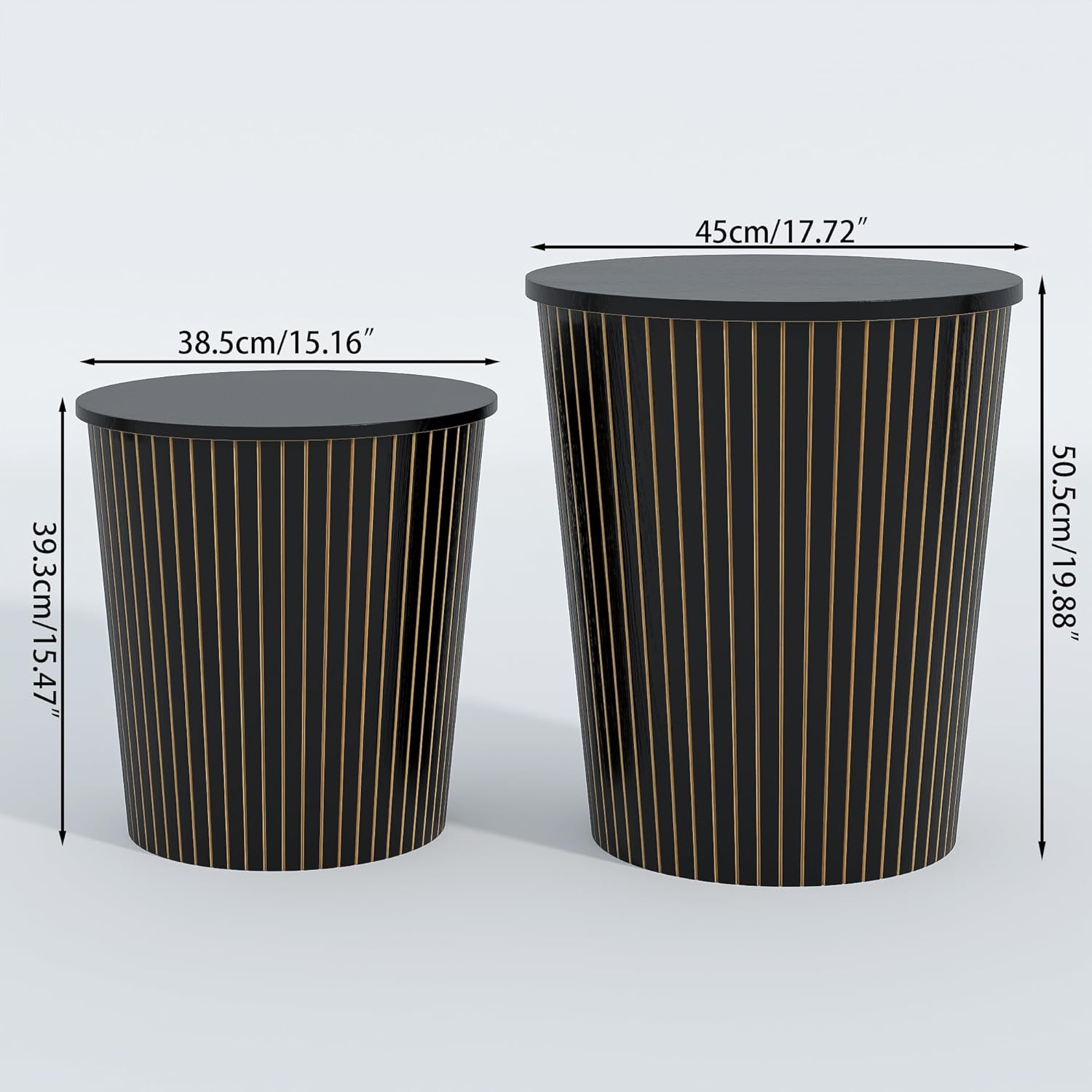 - Multifunctional Living Room Table: Round Coffee Table with Storage includes 2 round tables. The large coffee table measures 17.72''W x 19.88''H, and the small coffee table measures 15.16''W x 15.47''H. The round coffee table is suitable for holding drinks and snacks or placing your favorite books, cushions, blankets, pillows, and can be used as a coffee table, nightstand, side table or end table