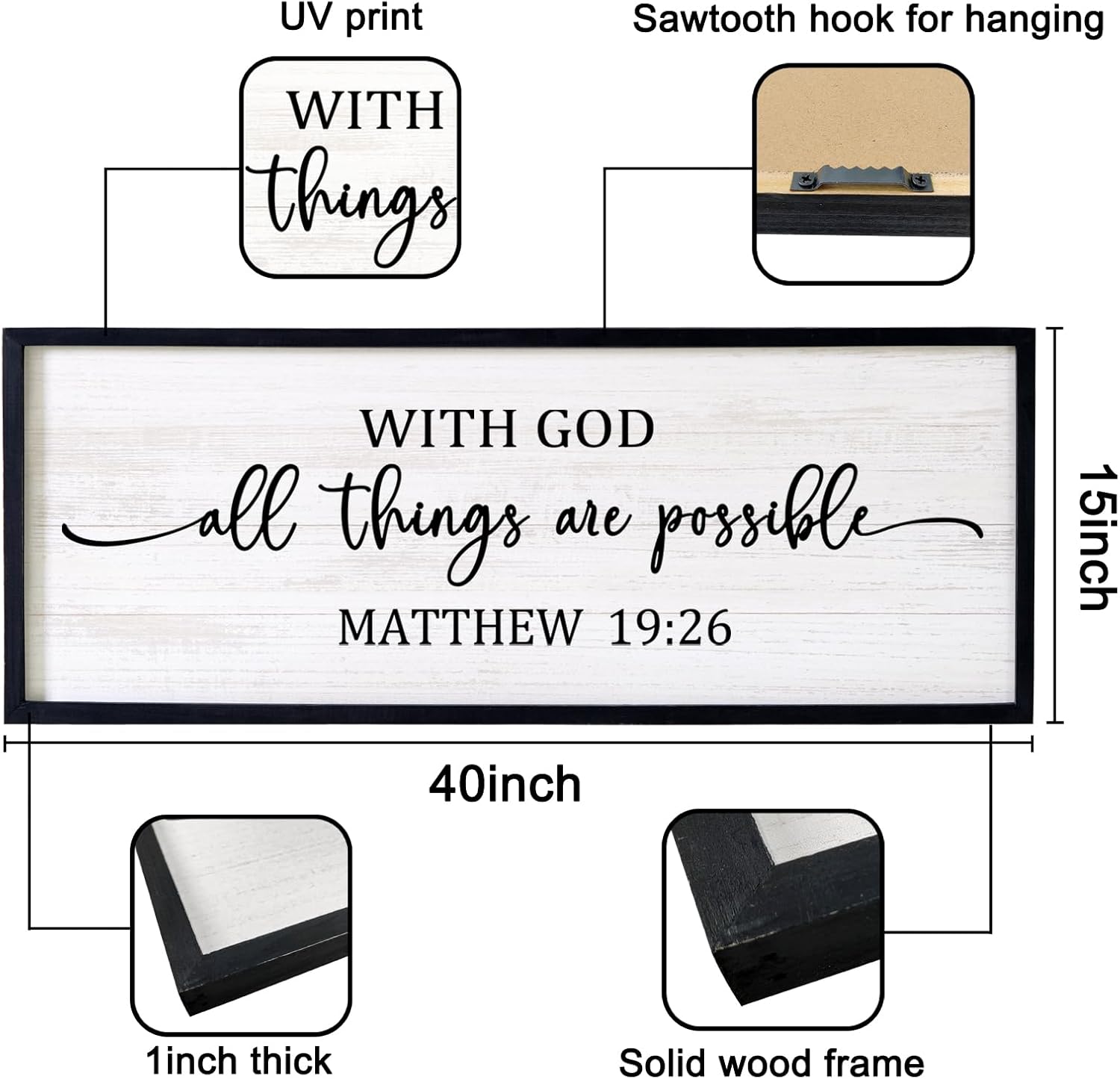 With God All Things are Possible Framed Wall Art, 40''×15'' Positive Holy Religious Rustic Bible Verse for Christian God Jesus Christ Prayer, Vintage Horizontal Inspirational Catholic Scripture Decor