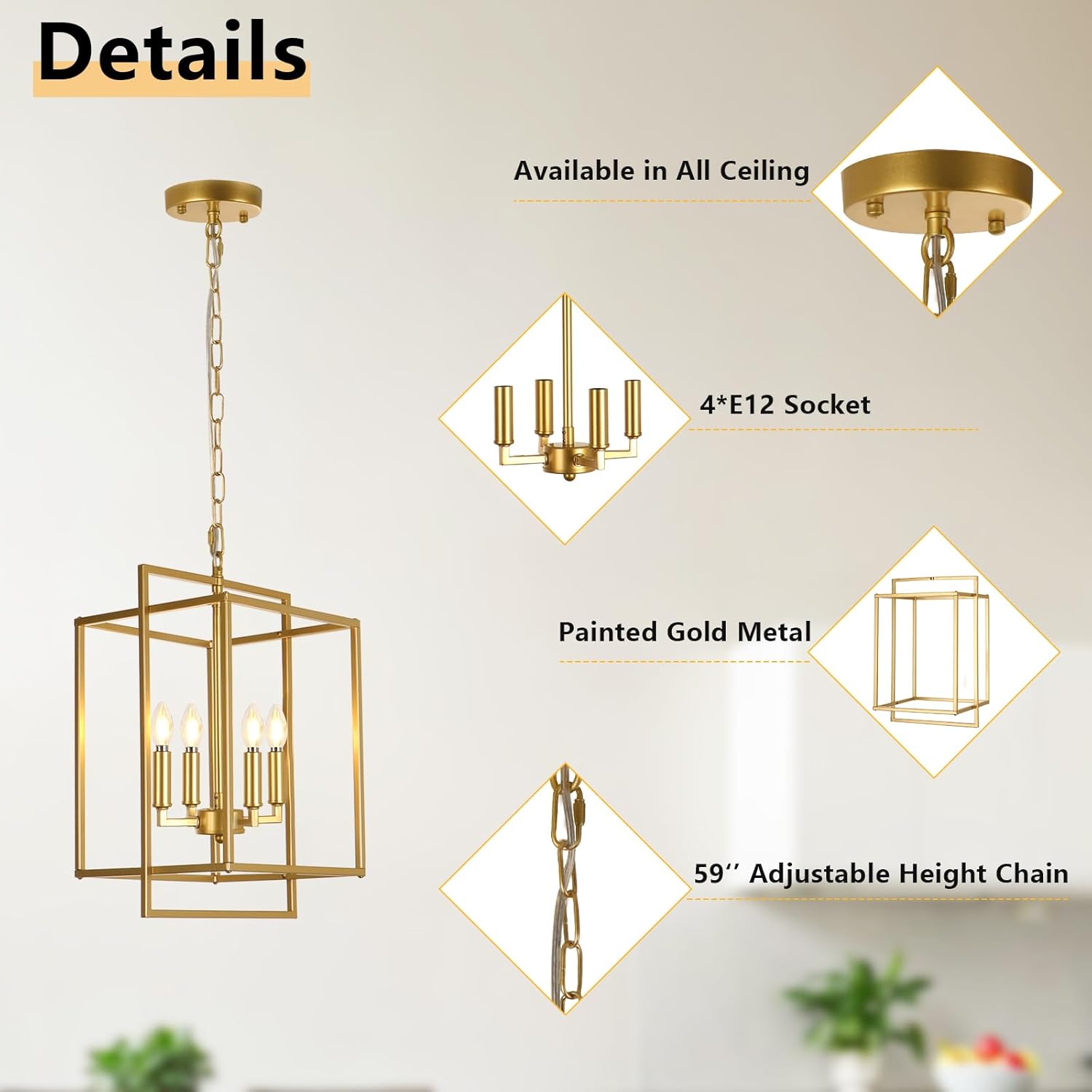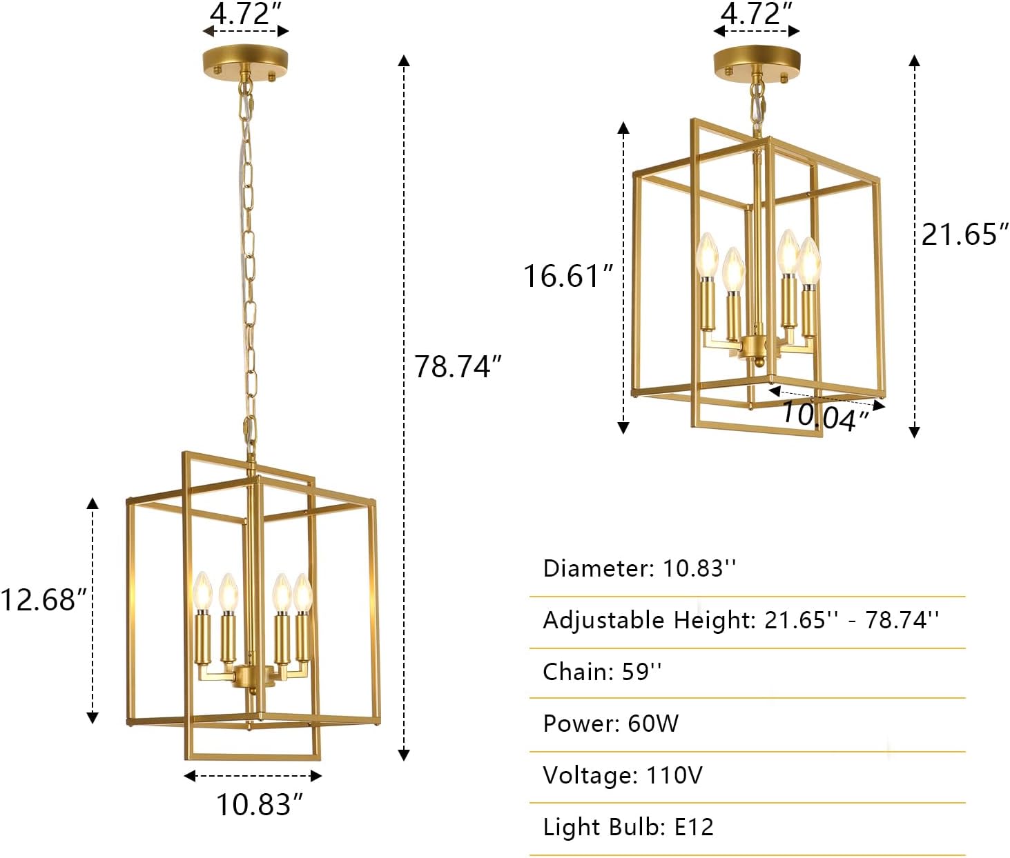 • Geometric Design: This farmhouse gold chandelier consists of a simple gold rectangular metal frame and a candle base. The appearance is clean and smooth, stylish and modern. Let the KMaiPem modern chandelier light up your life and add a touch of brilliance to your life