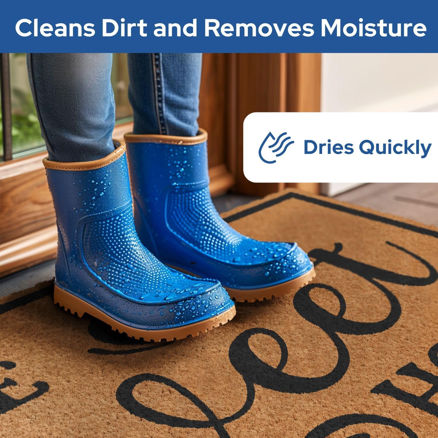 - Slip-Proof - Our non-slip rubber backing keeps the welcome door mat securely in place, preventing slips and falls. Whether you have a concrete, stone, or wooden porch, our exterior door mat outside entrance rug will stay put and keep your visitors safe.