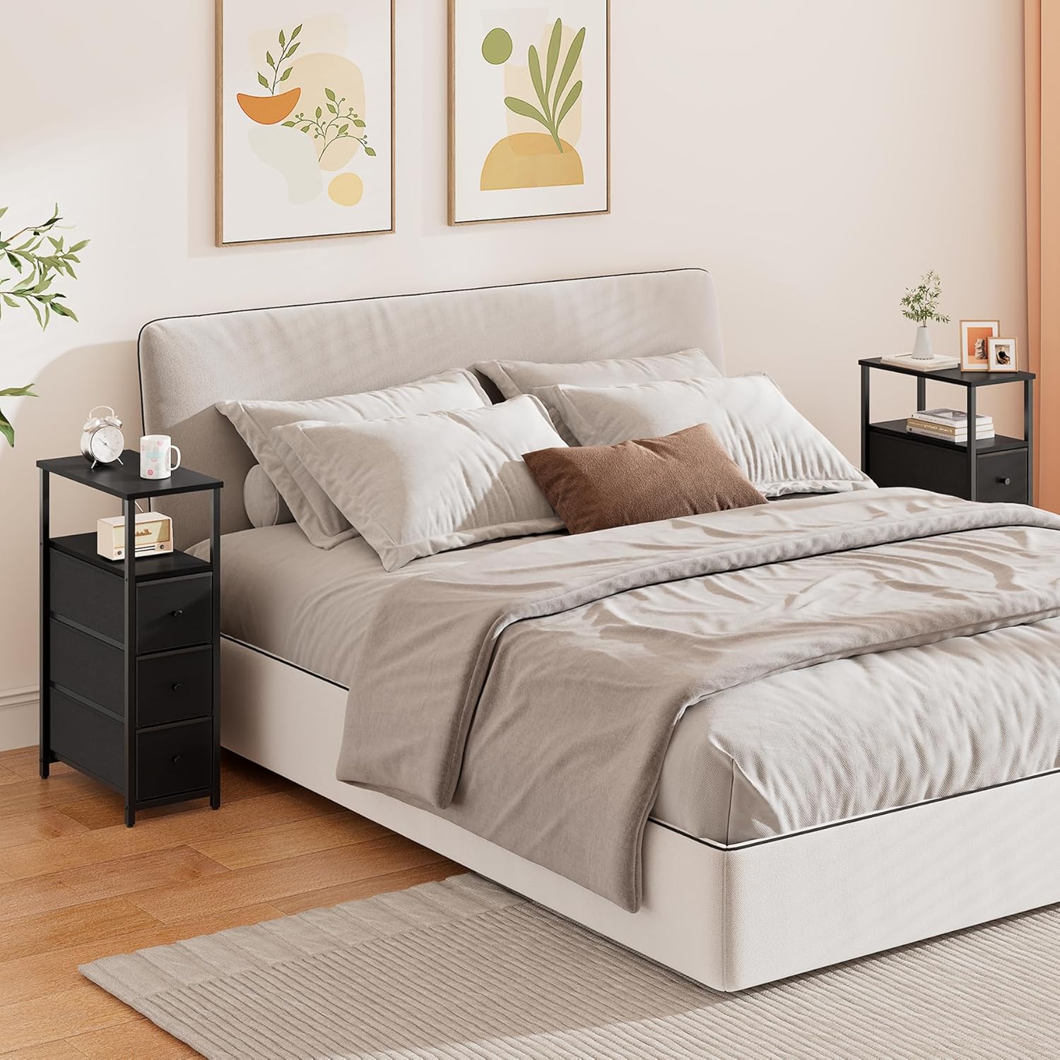 - [Easy to Assemble and Clean] This nightstand comes with numbered parts and clear instructions to help you finish the assembly easily. You just need a damp cloth to keep the bed side table clean. Equipped with adjustable foot mats to accommodate uneven surfaces and prevent scratching the floor.