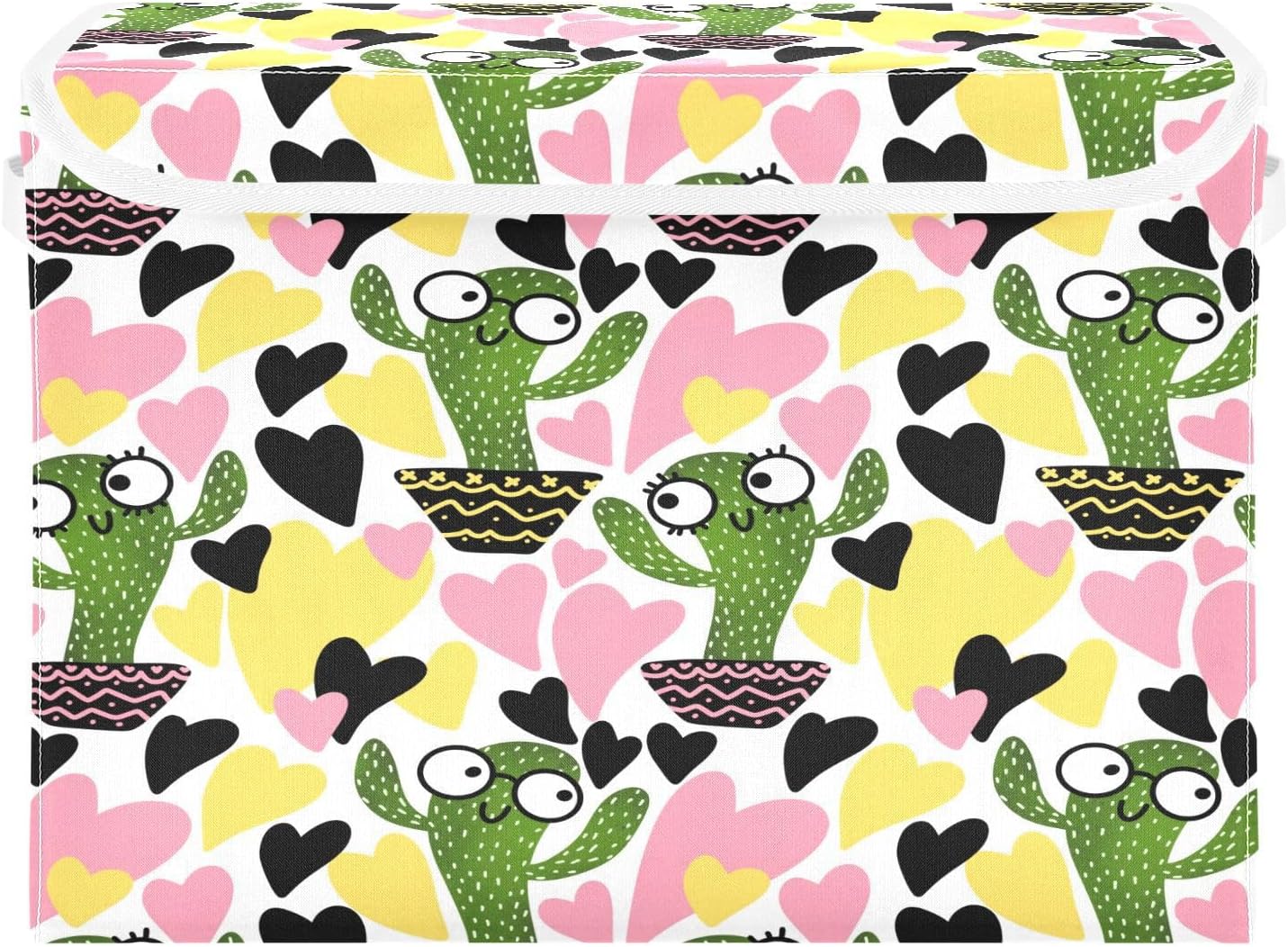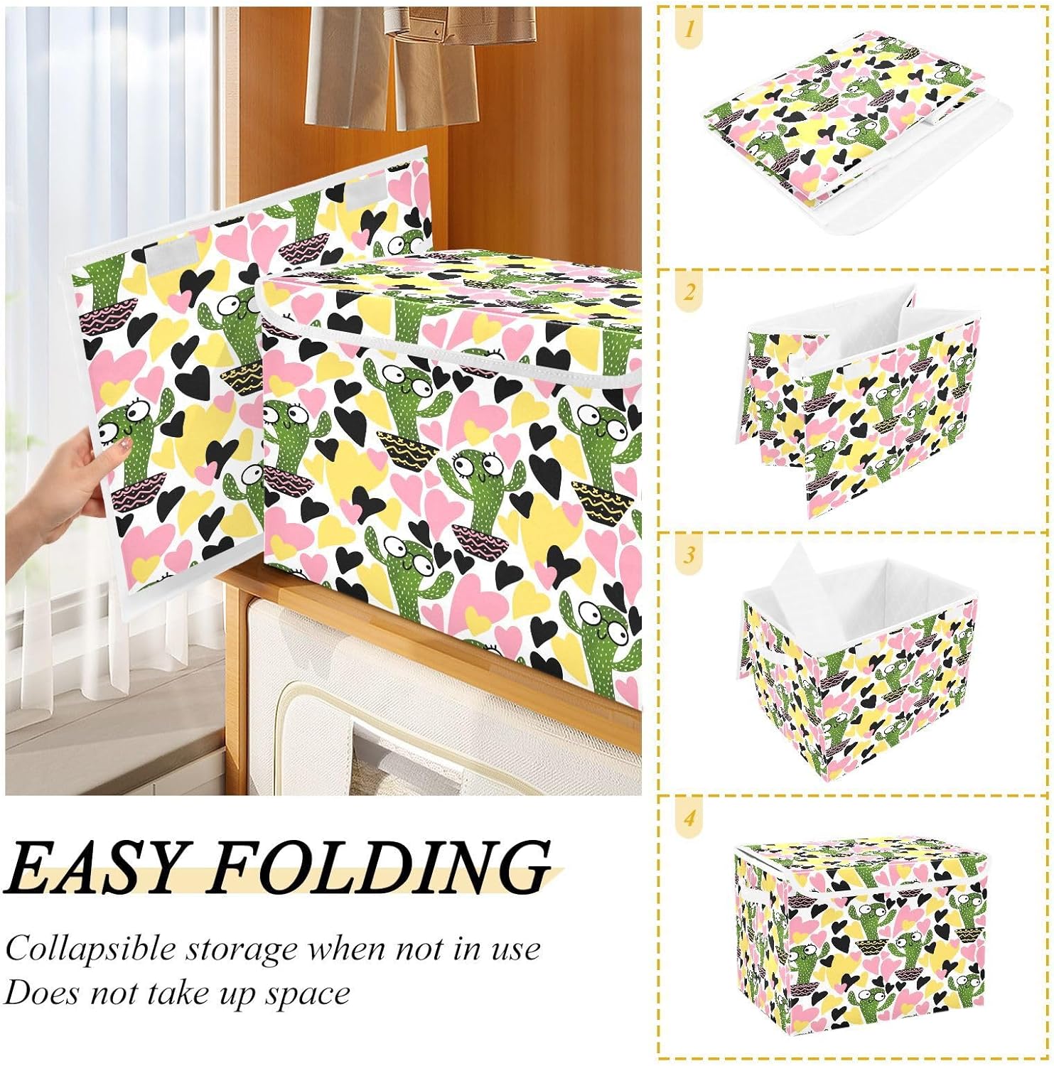 susiyo Cactus Seamless Floral fabric storage baskets with lids,Collapsible Storage Boxes,Foldable storage boxes with handles for Home,Office,Closet Organization
