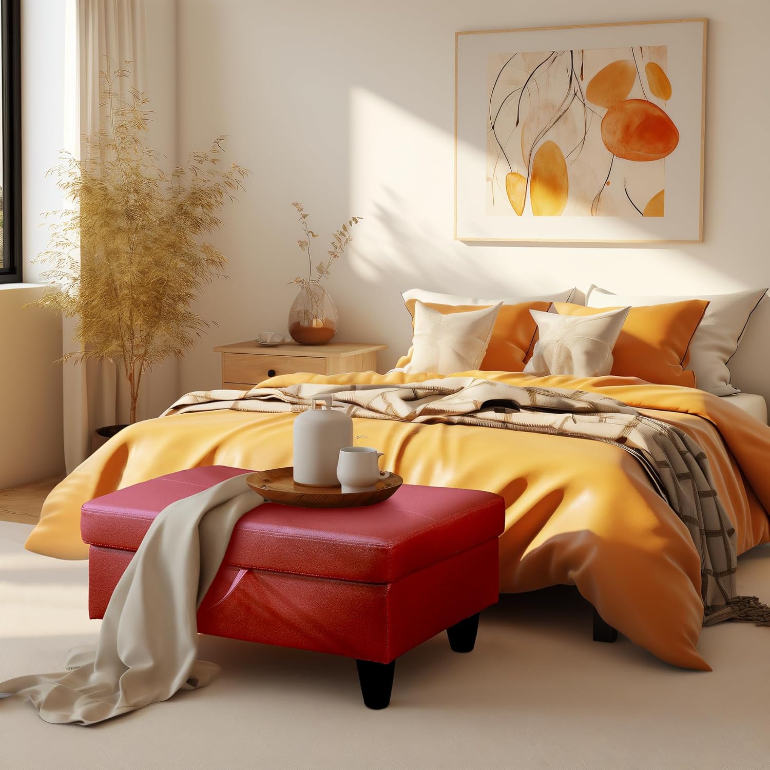 - MULTIFUNCTIONAL OTTOMAN: This ottoman is a perfect fit for multiple spaces, whether it’s your bedroom, living room, entryway, or hallway. It offers versatile use as an entryway bench, footrest, coffee table, or extra seating, making it a stylish and practical addition to any home. Ideal for small spaces, this ottoman enhances both functionality and décor.