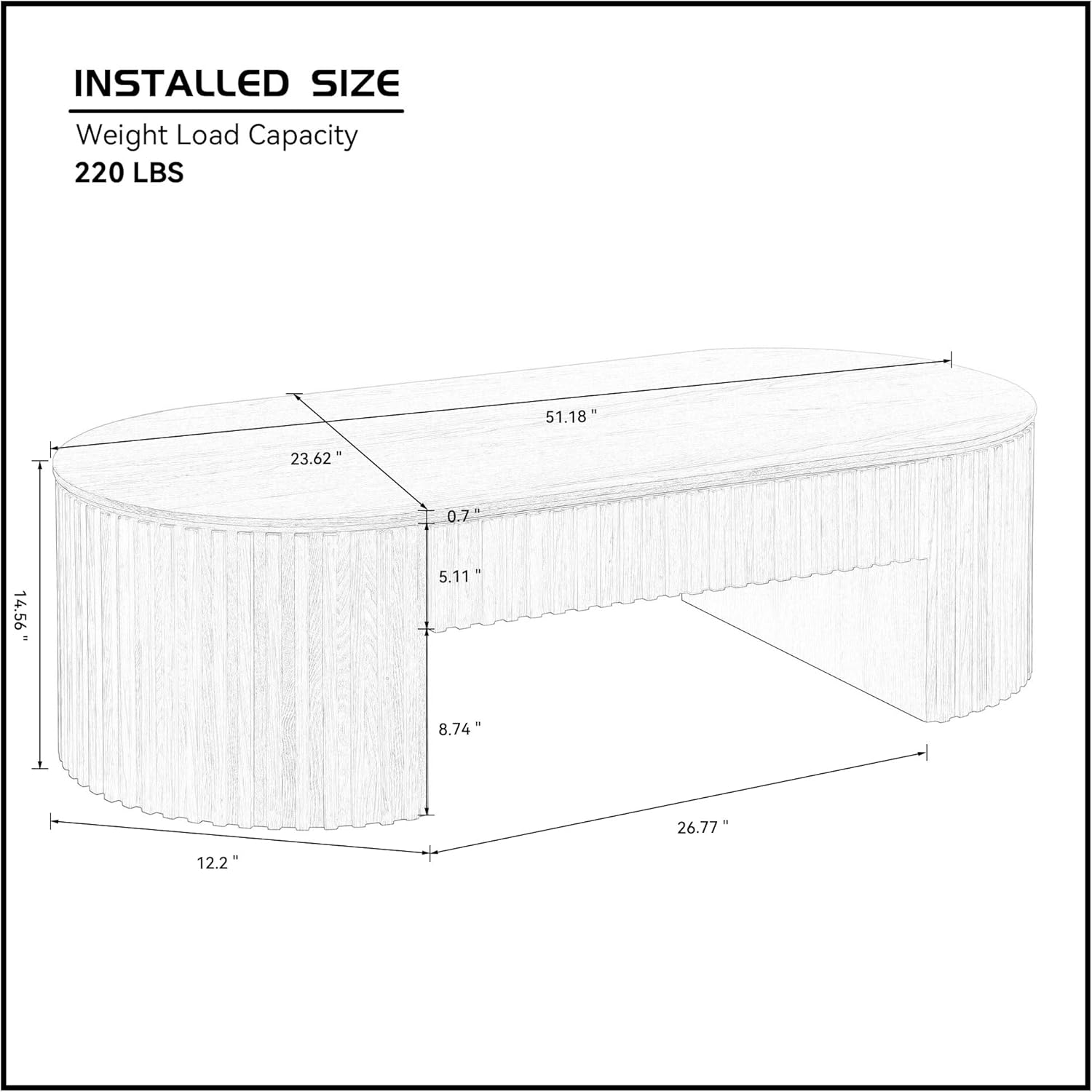 51.18'' Oval Coffee Table for Living Room Fluted Center Table with Drawer, Mid Century Modern Coffee Tables, Easy Assembly for Office Storage Tea Table Oak