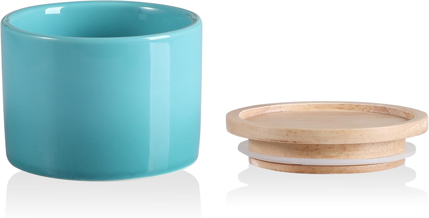 Sweejar Kitchen Canisters Ceramic Food Storage Jar, Stackable Containers with Airtight Seal Wooden Lid for Serving Ground Coffee, Tea, Sugar, Spice and More - 5 Fl Oz(Gradient Blue)