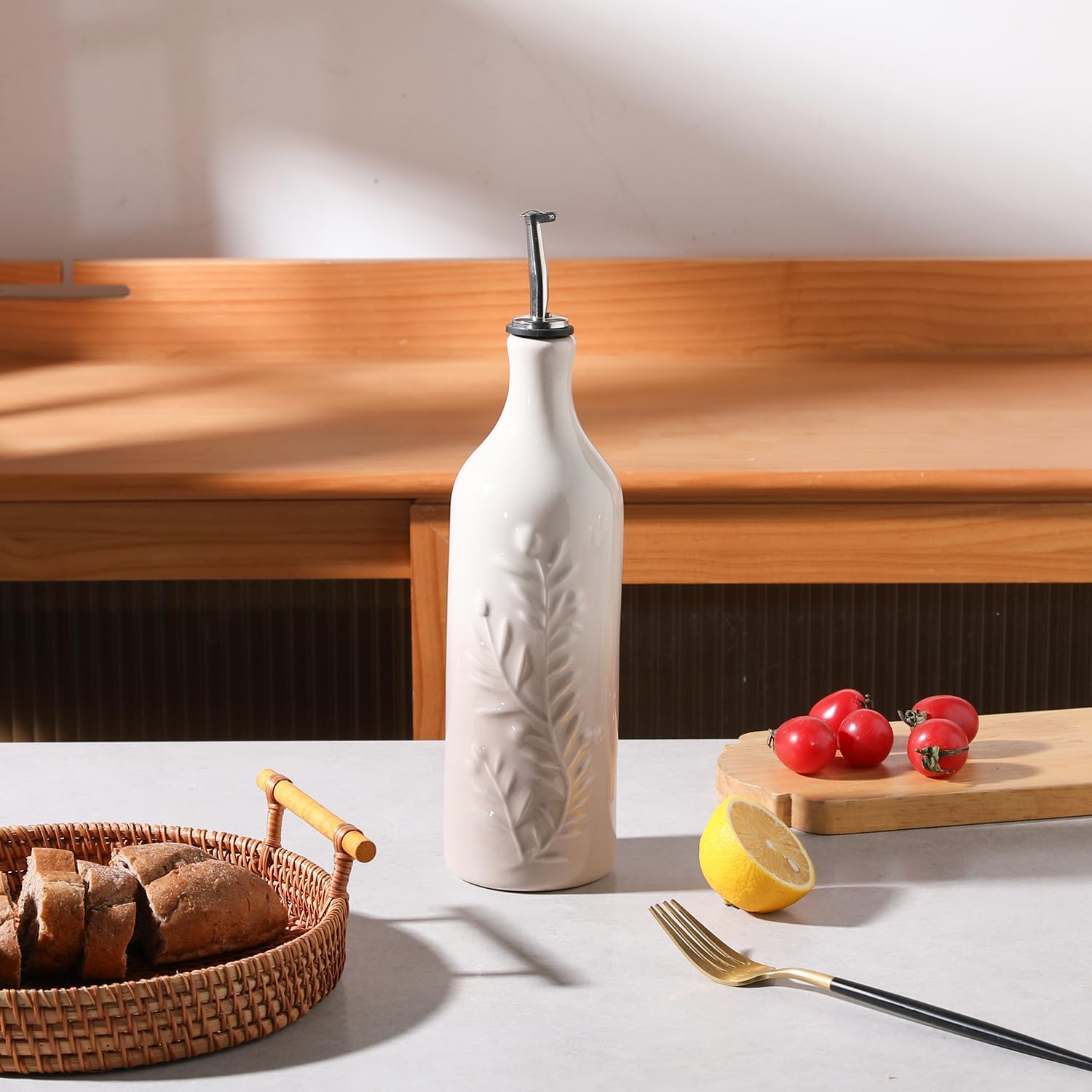 - Durable and Precise Pouring Control - The olive oil bottle fired at high temperatures, to form a smooth glazed surface, strength and durability. The carefully designed spout that allows for easy pouring without any messy drips or spills.