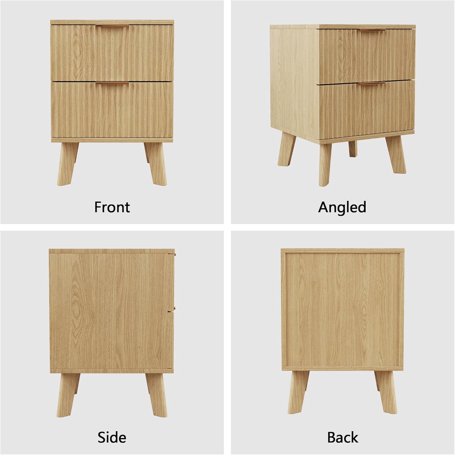 Fluted Nightstands Set of 2, Mid Century Modern 2 Drawer Dresser for Bedroom, Small Night Stand Side Table End Table with Wood Drawer Storage for Bedroom Closet, Natural