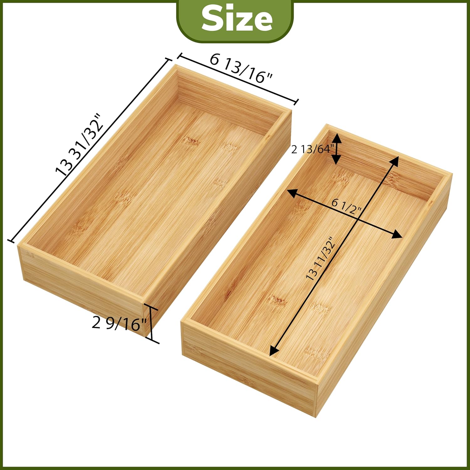 - Perfect Size: The size of this deep drawer organizer is designed to store a variety of items from 3-13 inches in length and 1-6 inches in width, the inner box measures 13 and 11/32 inches in length, 6.5 inches in width, 2 and 13/64 inches in depth, whether it's silverware, cutlery, knives, or jewelry, stationery, you can easily store them all