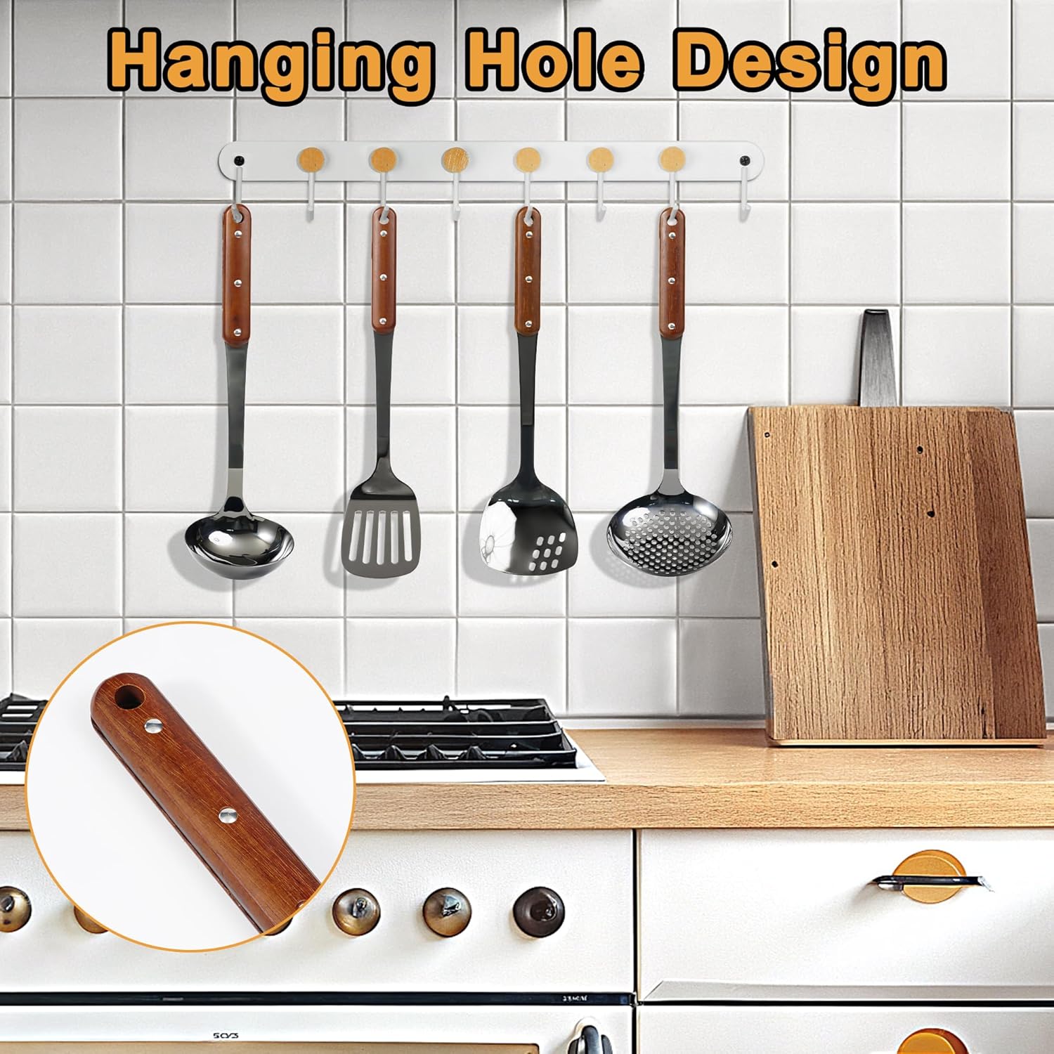 - Solid Kitchen Utensils: Wooden handle combined with polished mirror 304 stainless steel,combines sturdiness and aesthetics, the production process is more complicated, but it's worth it