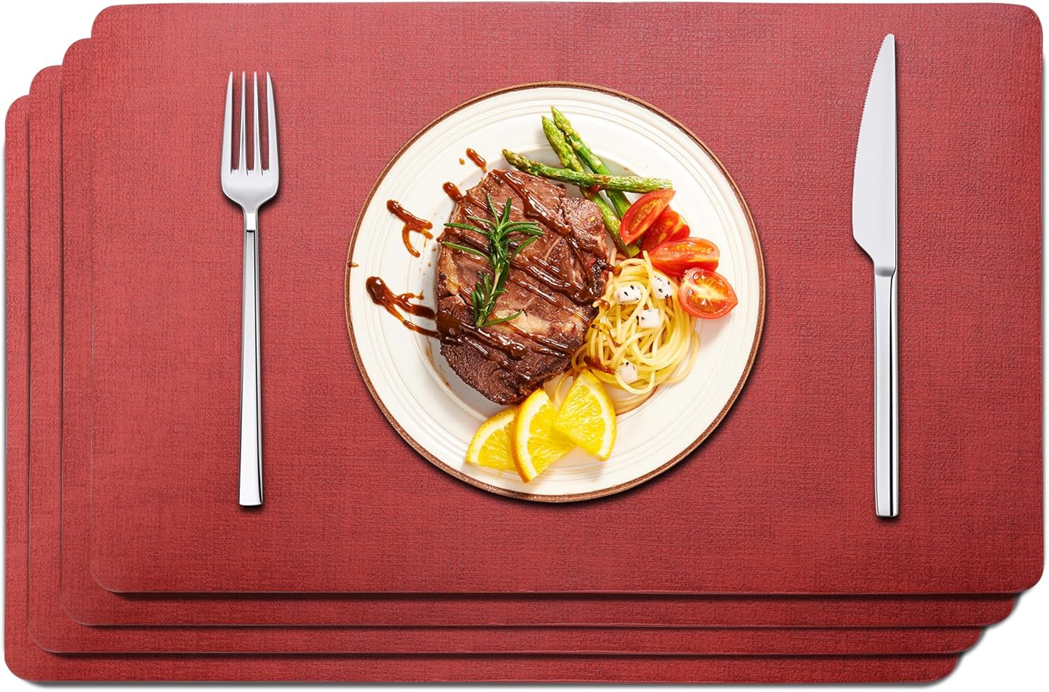 Maxpearl Faux Leather Placemats Set of 4, Waterproof - Wipe Clean - Heat Resistant - Anti Slip Dining Table Place Mats, Suitable for Indoor & Outdoor Use, 17’’×12’’, Red