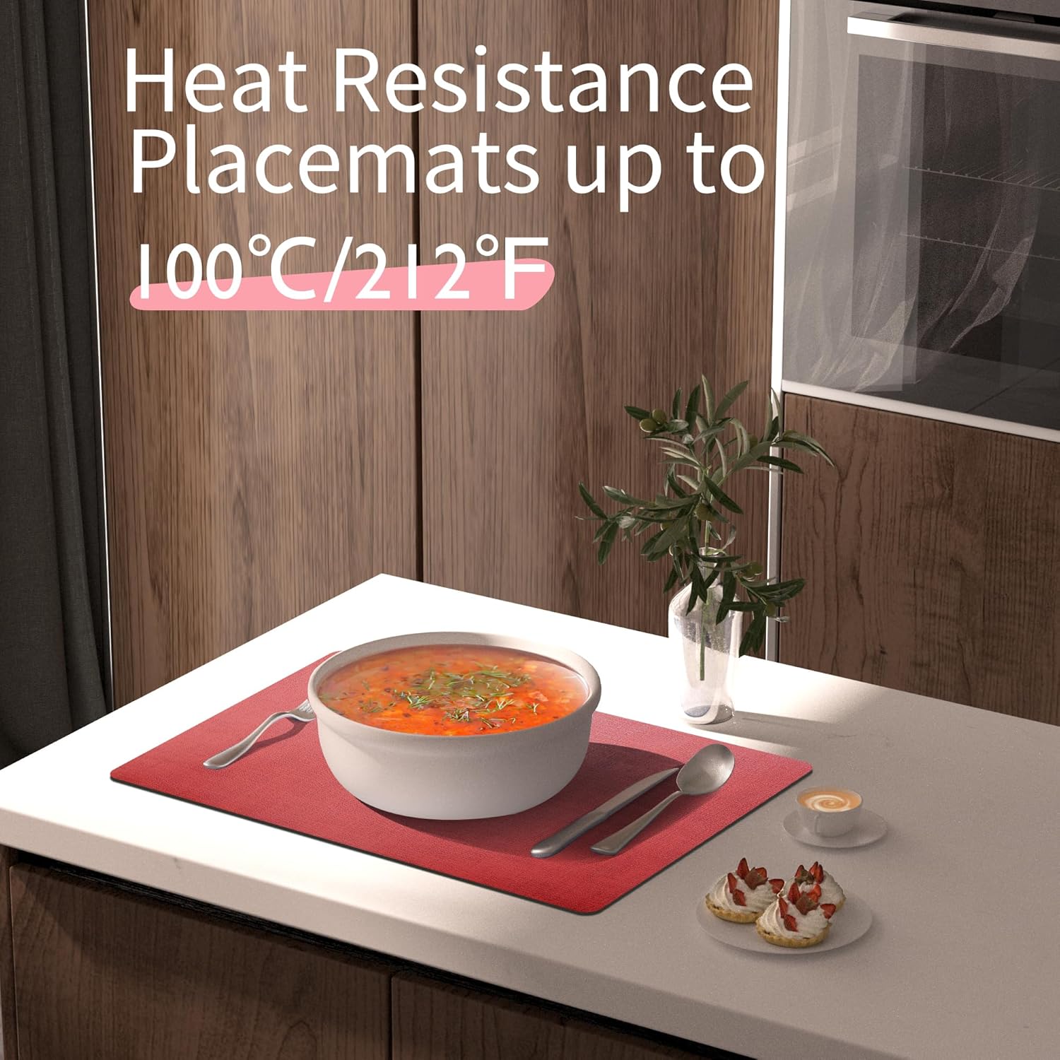 - EASY CARE: Designed for ease of use, these durable table mats withstand any spills and stains, making clean-up a breeze. Just with a simple wipe with a rag or a rinse under the tap, they'll be spotless and ready for your next meal.