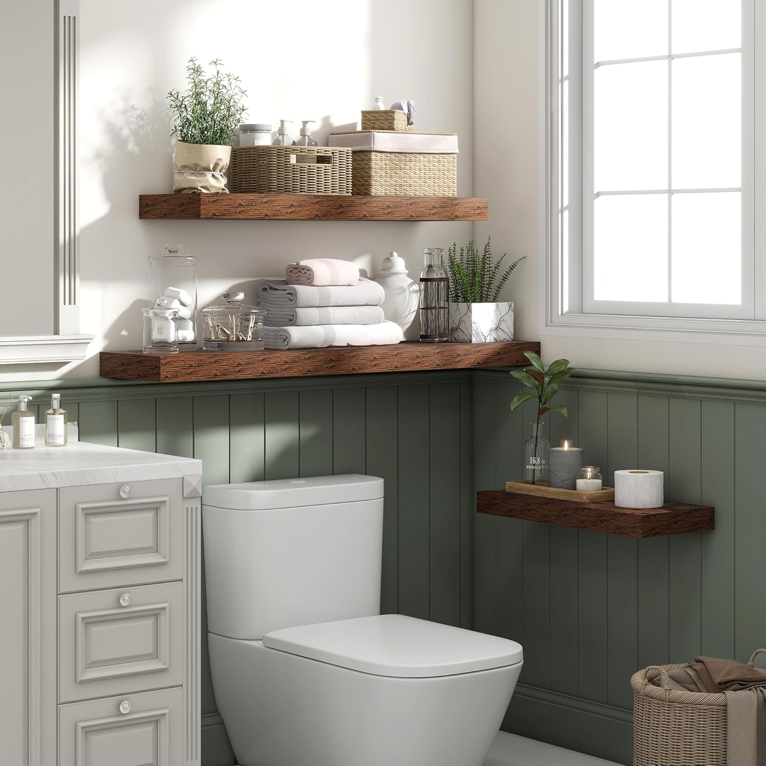Heimlove 48" Floating Shelves for Wall,10 Deep Rustic Brown Wood Display & Storage Wall Shelves with Heavy Duty Brackets for Bathroom,Bedroom,Kitchen,Living Room,Office,Set of 2