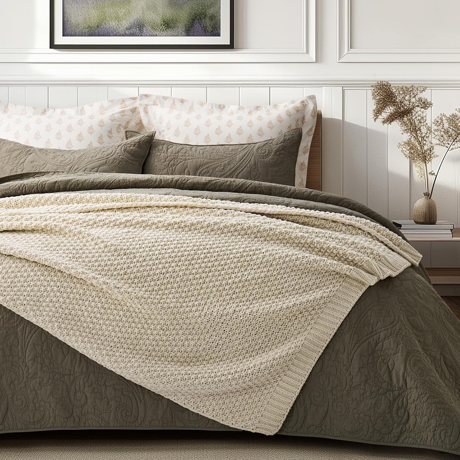 - ELEGANT MOSS STITCH Featuring a beautifully sculpted moss stitch knit, this throw blends dimensional texture with elevated design—perfect for layering over your bed, sofa, or accent chair.