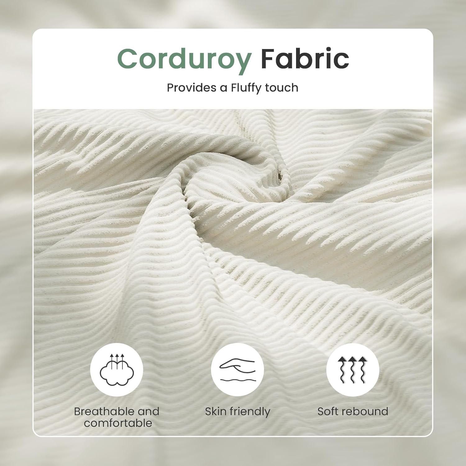 - ăFluffy Corduroy FabricăSimple design suits any style of apartment living room, bedroom, creamy couch brings a soft touch like living room cloud sofa. This living room sofa decorates your home with warmth and calmness
